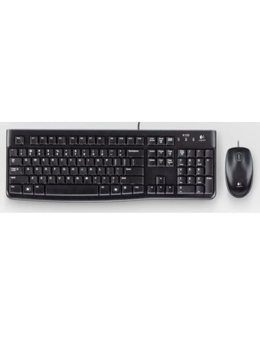 Logitech Desktop MK120, Alámbrico, USB, QWERTY, Negro, Ratón incluido