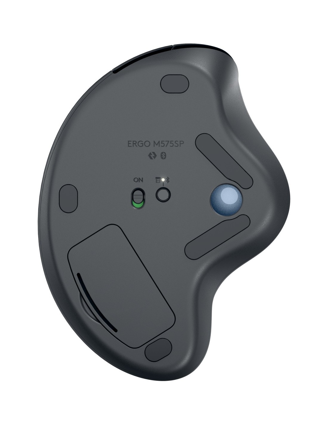 Logitech ERGO M575S. Factor de forma: mano derecha. Tecnología de detección de movimientos: Trackball, Interfaz del dispositivo: Bluetooth, Resolución de movimiento: 2000 DPI, Tiempo de respuesta: 11,25 ms, Tipo de botones: Botones presionados, Cantidad de botones: 5, Tipo de desplazamiento: Rueda. Fuente de energía: Baterías. Color del producto: Grafito, Azul
