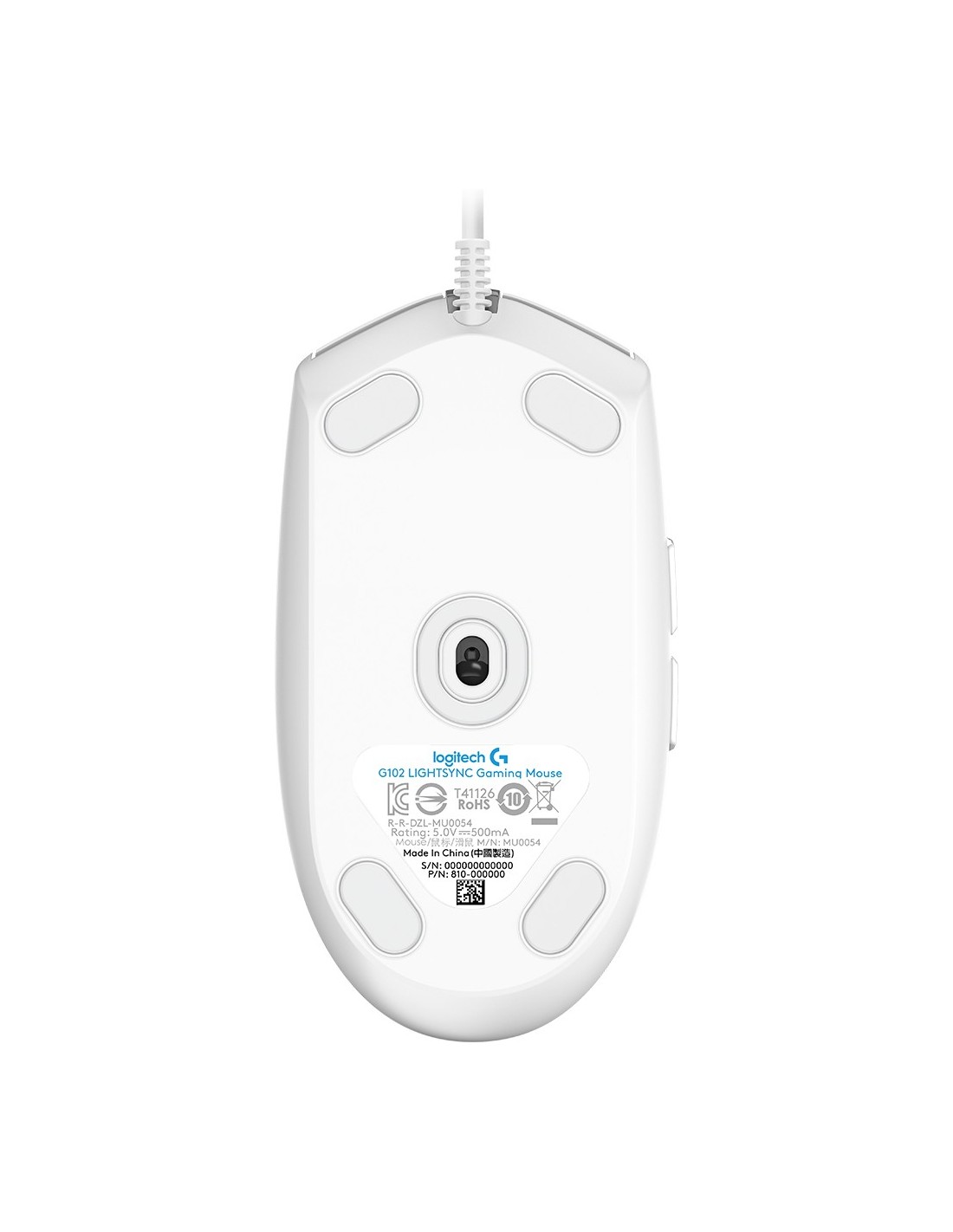 Logitech G 910-005824. Interfaz del dispositivo: USB tipo A, Resolución de movimiento: 8000 DPI, Tiempo de respuesta: 1 ms, Tipo de botones: Botones presionados, Cantidad de botones: 6, Tipo de desplazamiento: Rueda. Iluminación de color: Multi. Fuente de energía: Cable. Color del producto: Blanco