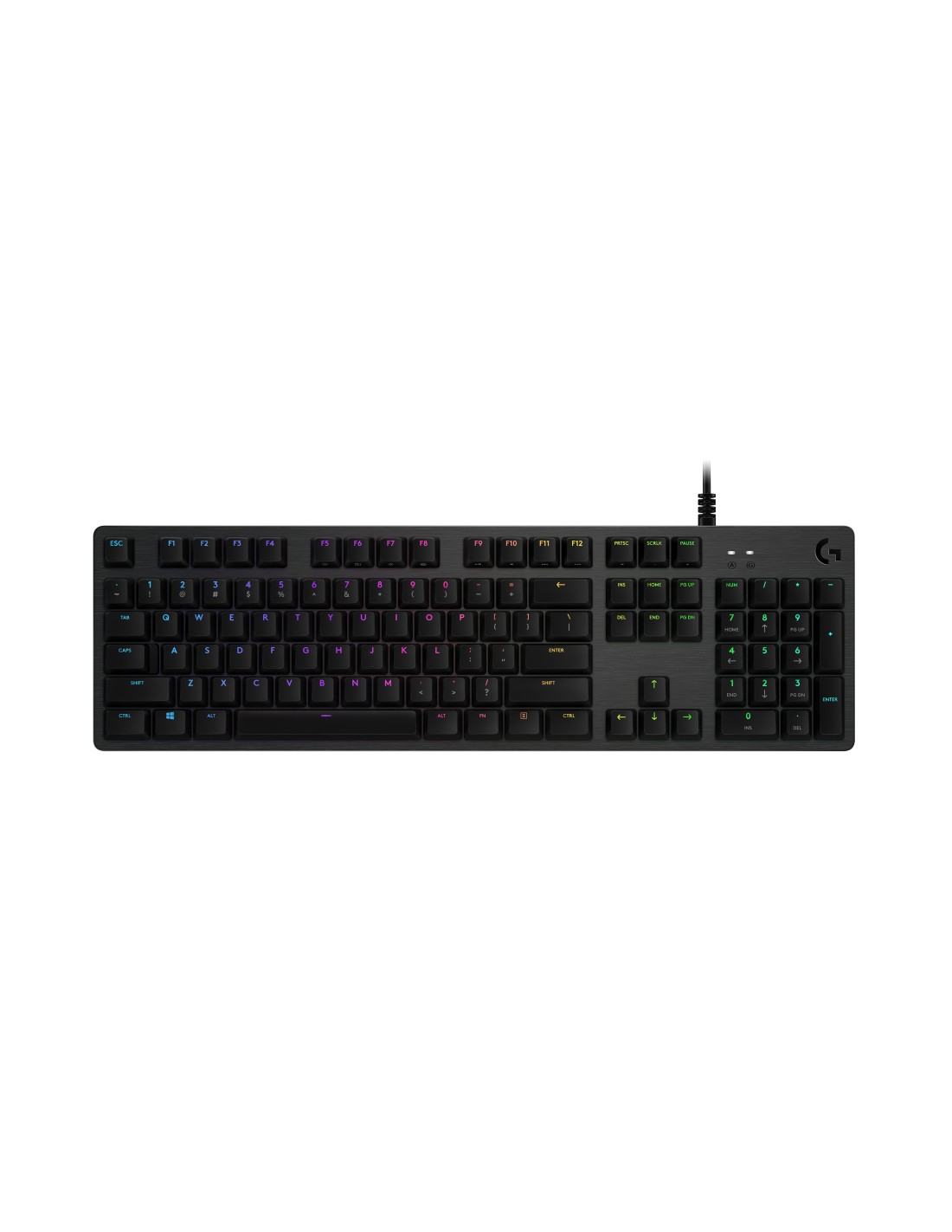 Logitech G 920-008940. Formato del teclado: Completo (100%). Estilo de teclado: Derecho. Tecnología de conectividad: Alámbrico, Interfaz del dispositivo: USB, Interruptor del teclado: Interruptor de membrana, Diseño de teclado: AZERTY. Tipo de retroiluminación: LED RGB. Longitud de cable: 1,8 m. Uso recomendado: Juego. Color del producto: Carbono