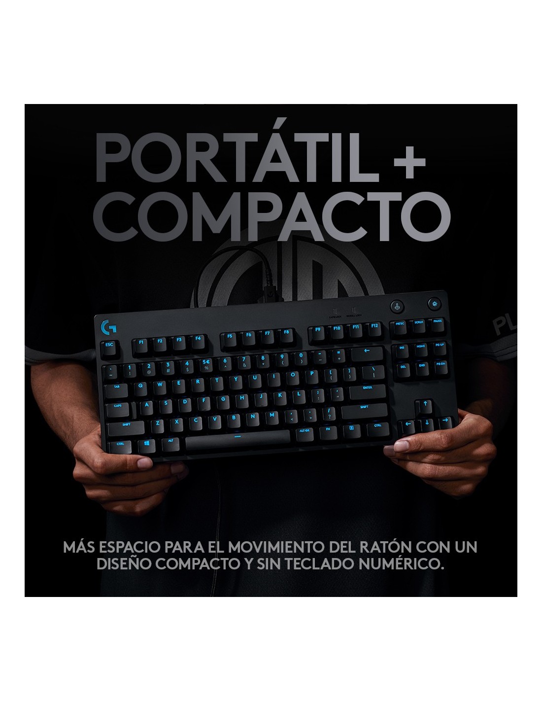 Logitech G 920-010593. Formato del teclado: Tenkeyless (sin zona numérica) (80 - 87%). Estilo de teclado: Derecho. Tecnología de conectividad: Alámbrico, Interfaz del dispositivo: USB, Interruptor del teclado: Interruptor mecánico, Diseño de teclado: QWERTY. Tipo de retroiluminación: LED RGB. Longitud de cable: 1,8 m. Uso recomendado: Juego. Color del producto: Negro