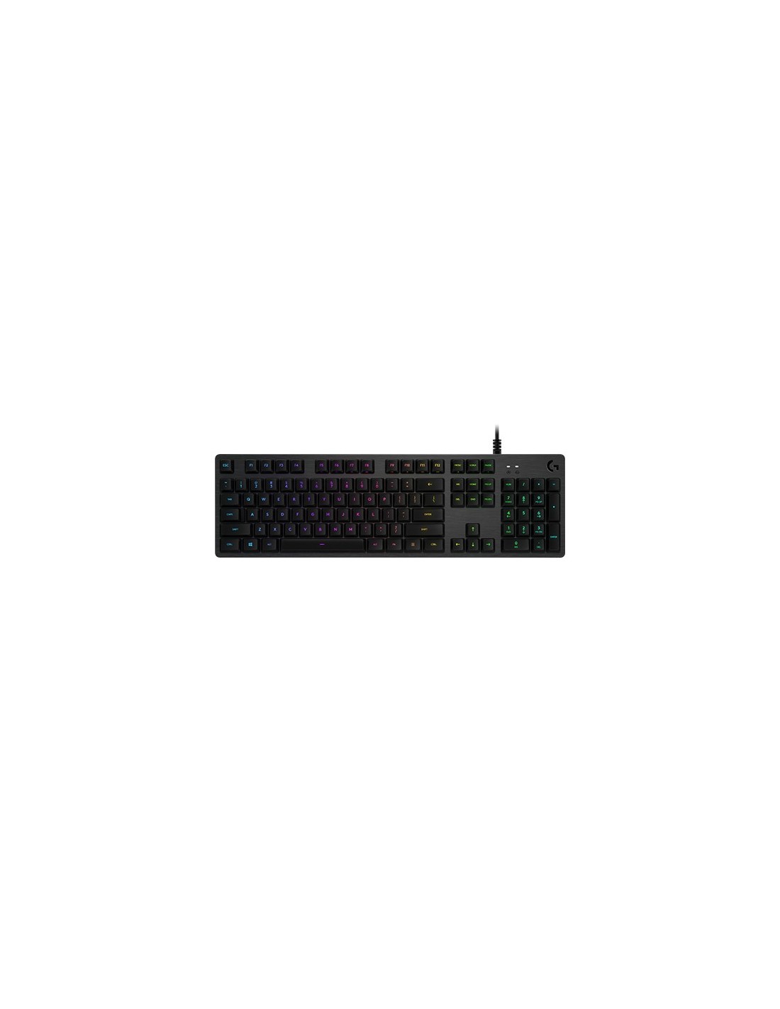 Logitech G G512. Formato del teclado: Completo (100%). Estilo de teclado: Derecho. Tecnología de conectividad: Alámbrico, Interfaz del dispositivo: USB, Interruptor del teclado: Interruptor mecánico, Diseño de teclado: AZERTY. Tipo de retroiluminación: LED RGB. Longitud de cable: 1,8 m. Uso recomendado: Juego. Color del producto: Carbono