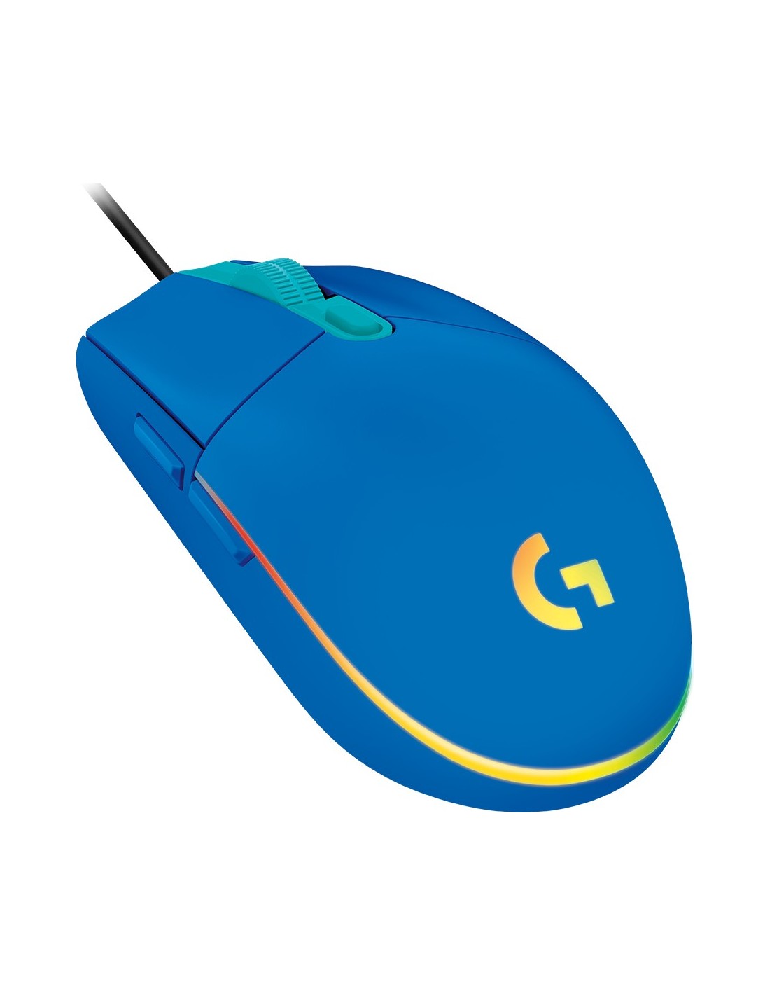 Logitech G G102 Lightsync. Interfaz del dispositivo: USB tipo A, Resolución de movimiento: 8000 DPI, Tiempo de respuesta: 1 ms, Tipo de botones: Botones presionados, Cantidad de botones: 6, Tipo de desplazamiento: Rueda. Iluminación de color: Multi. Fuente de energía: Cable. Color del producto: Azul