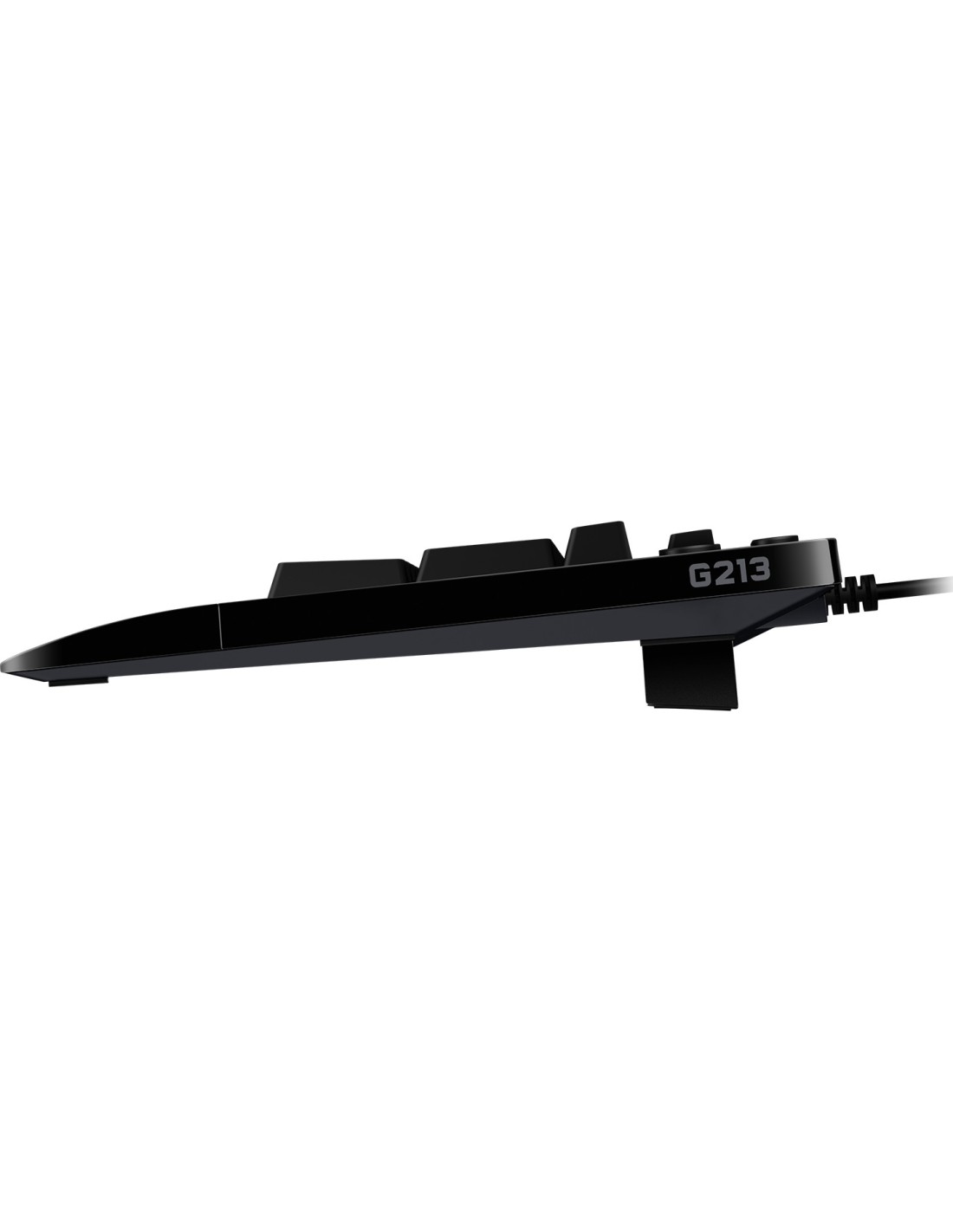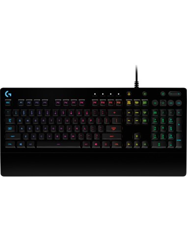 Logitech G G213 Prodigy. Formato del teclado: Completo (100%). Estilo de teclado: Derecho. Tecnología de conectividad: Alámbrico, Interfaz del dispositivo: USB, Interruptor del teclado: Interruptor mecánico, Diseño de teclado: QWERTY. Tipo de retroiluminación: LED RGB, Descansa muñecas. Longitud de cable: 1,8 m. Uso recomendado: Juego. Color del producto: Negro