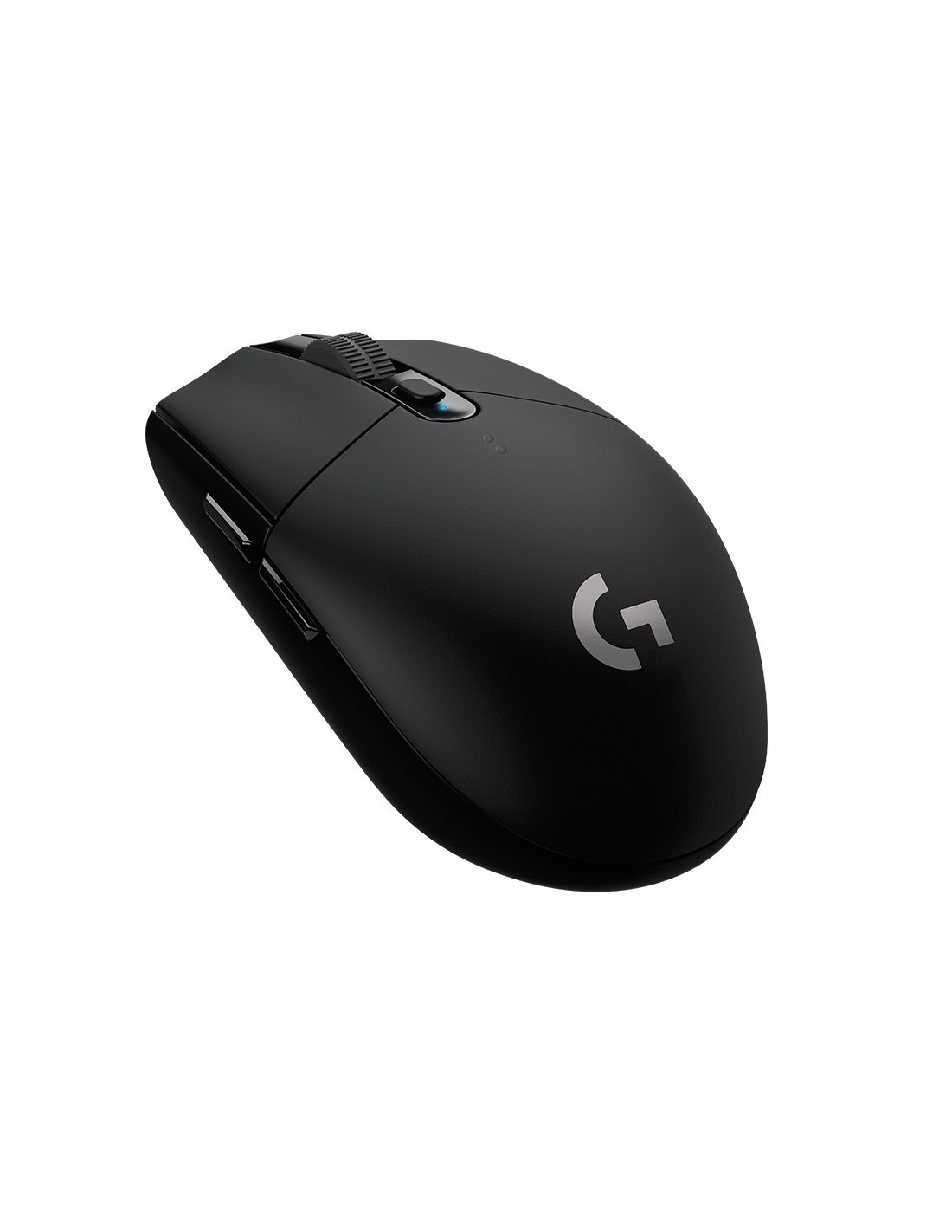 Logitech G G305. Factor de forma: mano derecha. Tecnología de detección de movimientos: Óptico, Interfaz del dispositivo: RF inalámbrico, Resolución de movimiento: 12000 DPI, Velocidad de cuadro: 400 pps, Tiempo de respuesta: 1 ms, Tipo de botones: Botones presionados, Cantidad de botones: 6, Tipo de desplazamiento: Rueda, Aceleración (máx.): 40 G. Fuente de energía: Baterías. Color del producto: Negro
