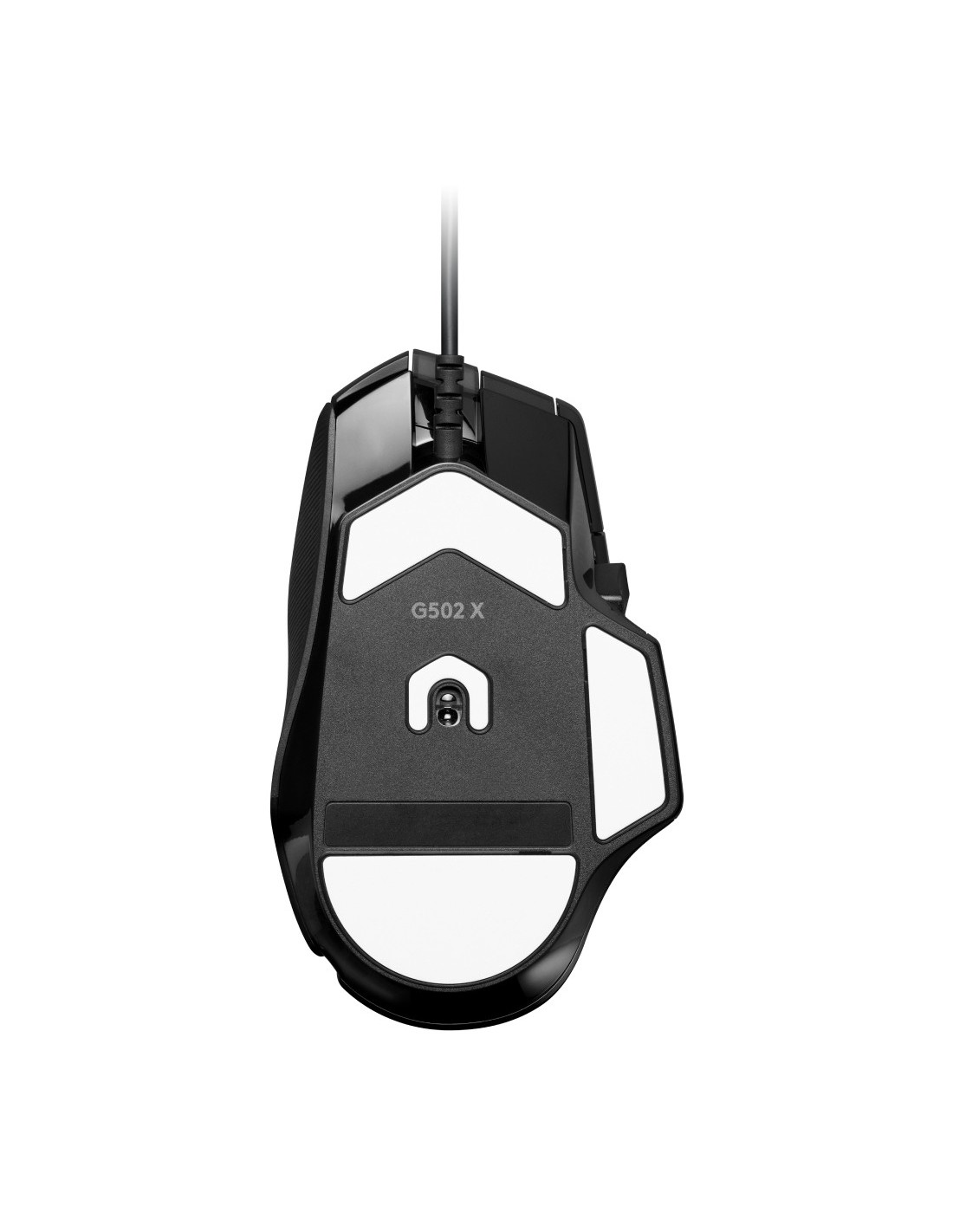 Logitech G G502 X. Factor de forma: mano derecha. Tecnología de detección de movimientos: Óptico, Interfaz del dispositivo: USB tipo A, Resolución de movimiento: 25600 DPI, Tipo de botones: Botones presionados, Cantidad de botones: 13, Tipo de desplazamiento: Rueda, Aceleración (máx.): 40 G. Fuente de energía: Cable. Color del producto: Negro