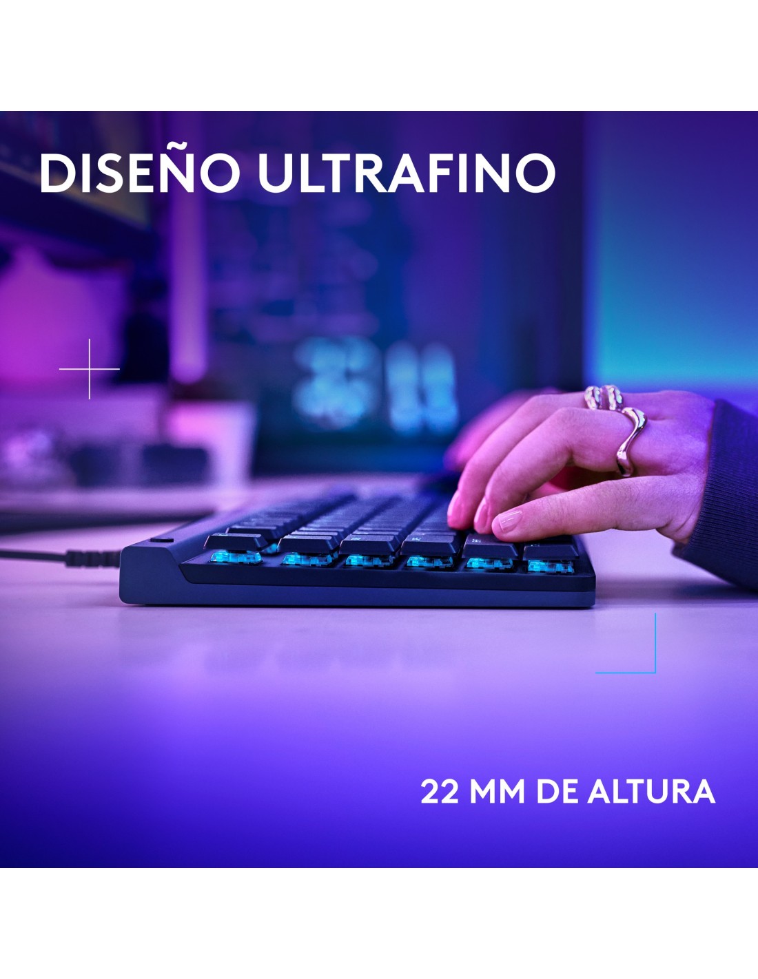 El diseño ultrafino de 22 mm se une a la ingeniería de alto rendimiento con el teclado con cable Logitech G515 TKL para gaming. Los interruptores mecánicos GL de perfil bajo vienen lubricados de fábrica y están disponibles en táctil y lineal. Las teclas duraderas de PBT de doble moldeado y la construcción en capas que amortigua el sonido ofrecen durabilidad y precisión para una experiencia superior tanto a la vista como en el juego.