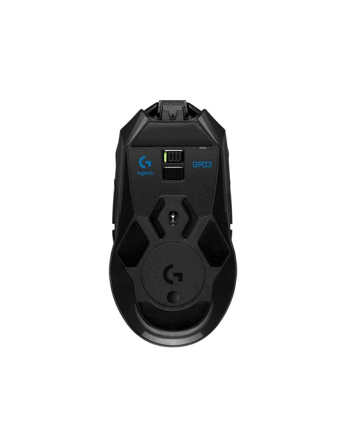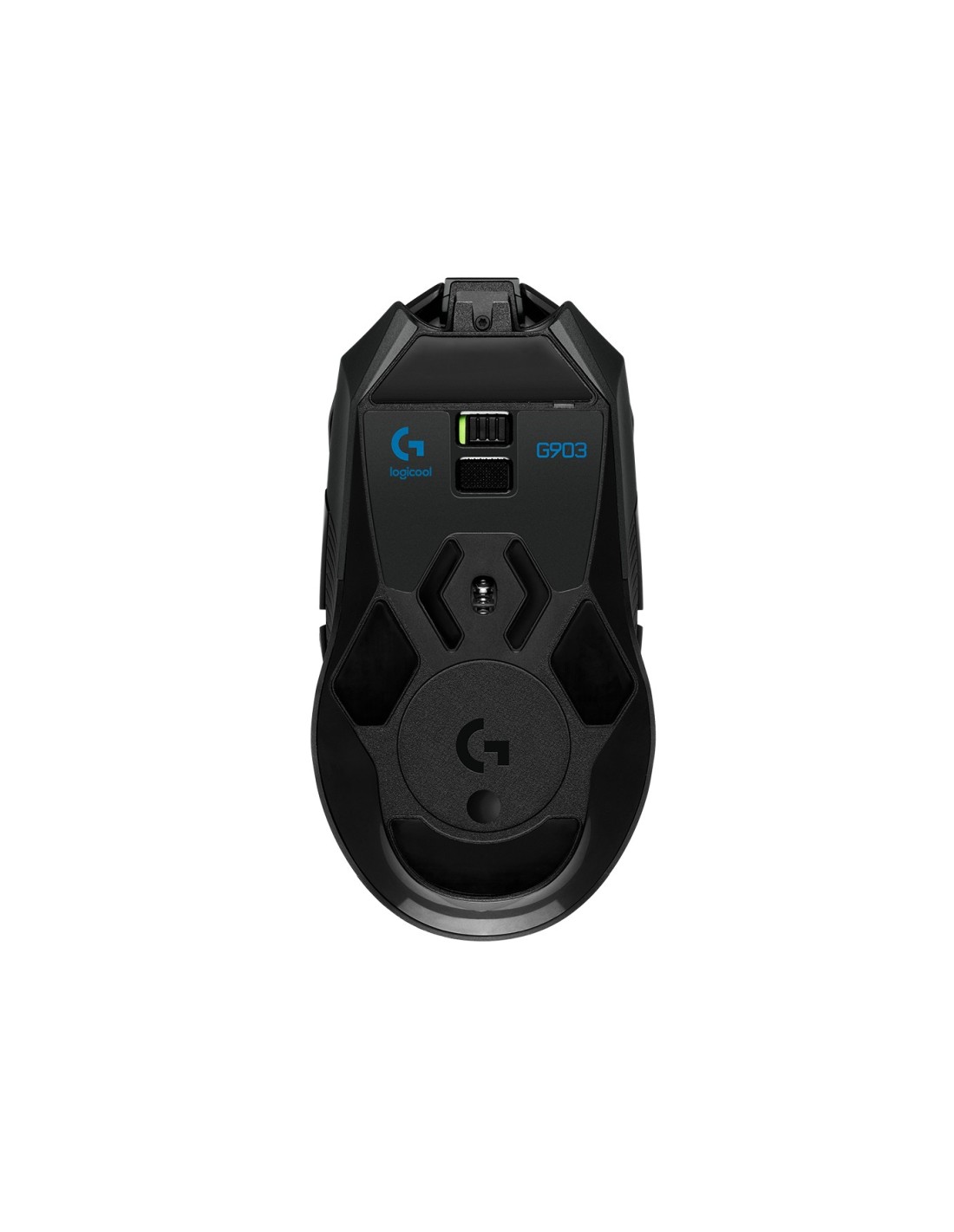 Logitech G G903 LIGHTSPEED. Factor de forma: Ambidextro. Tecnología de detección de movimientos: Óptico, Interfaz del dispositivo: RF inalámbrico, Resolución de movimiento: 25600 DPI, Tiempo de respuesta: 1 ms, Tipo de botones: Botones presionados, Cantidad de botones: 11, Tipo de desplazamiento: Rueda, Aceleración (máx.): 40 G. Iluminación de color: Multi. Fuente de energía: Baterías. Color del producto: Negro