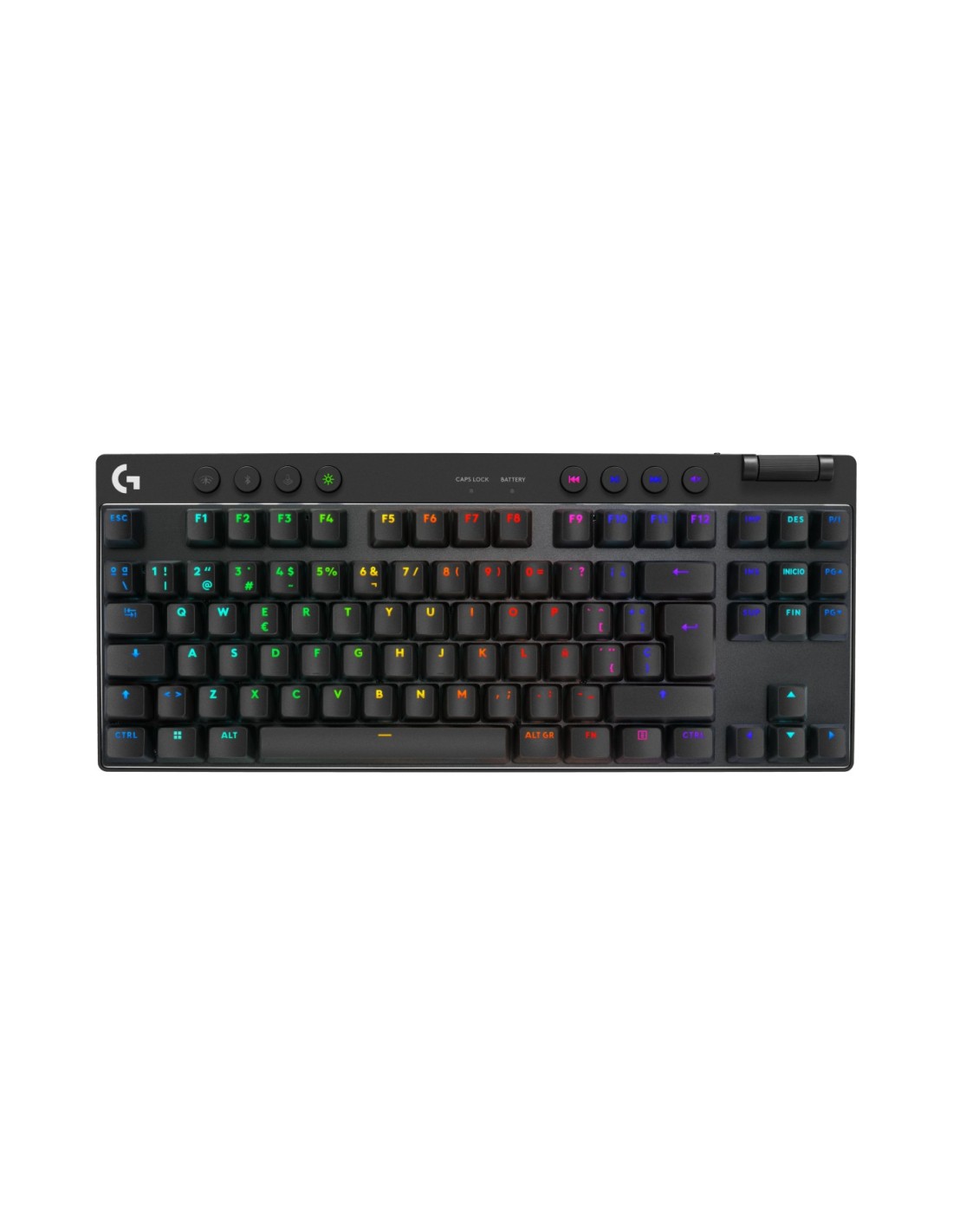 Logitech G PRO X TKL. Formato del teclado: Tenkeyless (sin zona numérica) (80 - 87%). Estilo de teclado: Derecho. Tecnología de conectividad: Inalámbrico, Interfaz del dispositivo: RF Wireless + Bluetooth, Interruptor del teclado: Interruptor mecánico, Diseño de teclado: QWERTY. Tipo de retroiluminación: LED RGB. Longitud de cable: 1,83 m. Uso recomendado: Juego. Color del producto: Negro