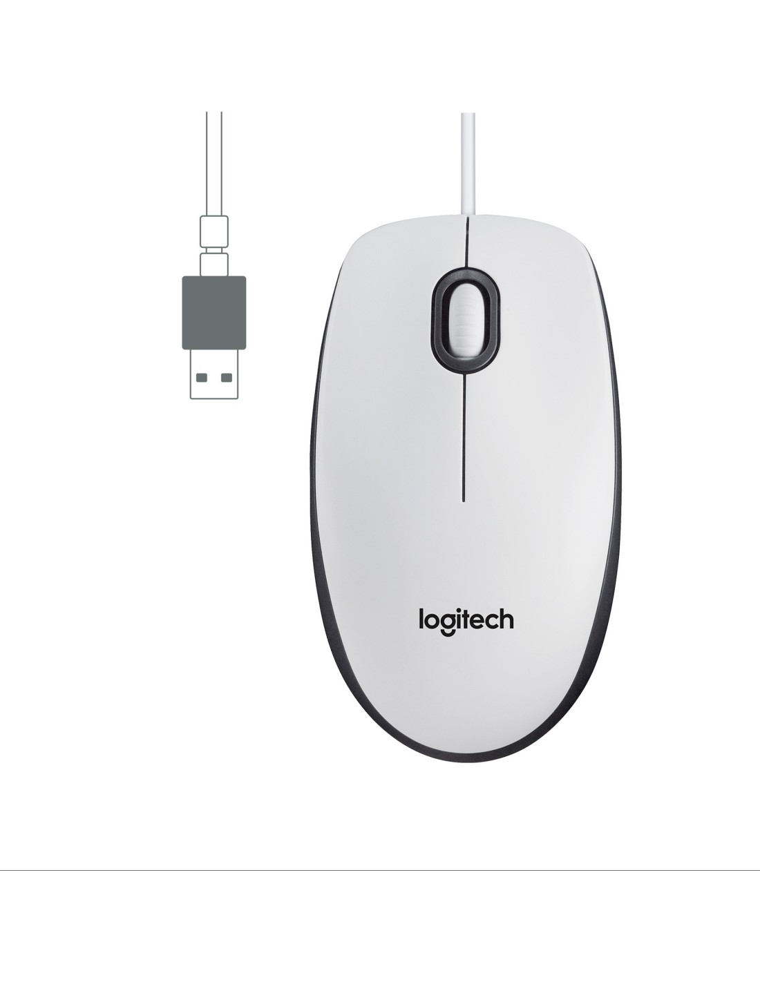 Logitech M100. Factor de forma: Ambidextro. Tecnología de detección de movimientos: Óptico, Interfaz del dispositivo: USB tipo A, Resolución de movimiento: 1000 DPI, Tipo de botones: Botones presionados, Cantidad de botones: 3, Tipo de desplazamiento: Rueda. Fuente de energía: Cable. Color del producto: Blanco