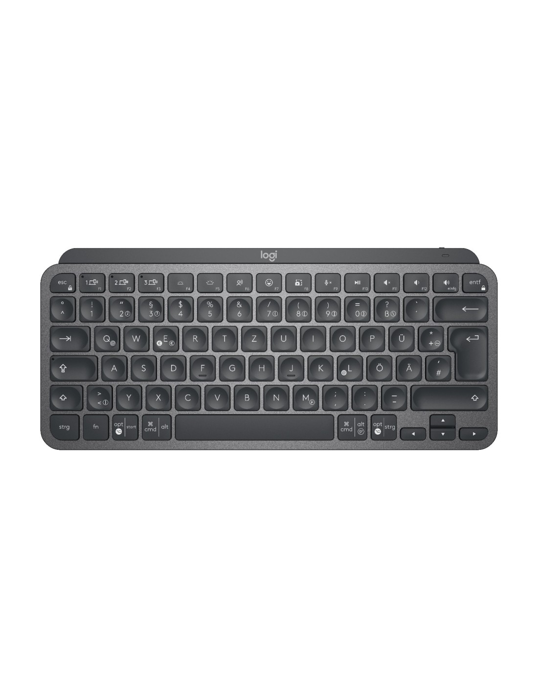 Logitech Master MX Keys Mini. Formato del teclado: Mini. Estilo de teclado: Derecho. Tecnología de conectividad: Inalámbrico, Interfaz del dispositivo: RF Wireless + Bluetooth, Diseño de teclado: QWERTZ. Tipo de retroiluminación: LED. Uso recomendado: Oficina. Color del producto: Grafito
