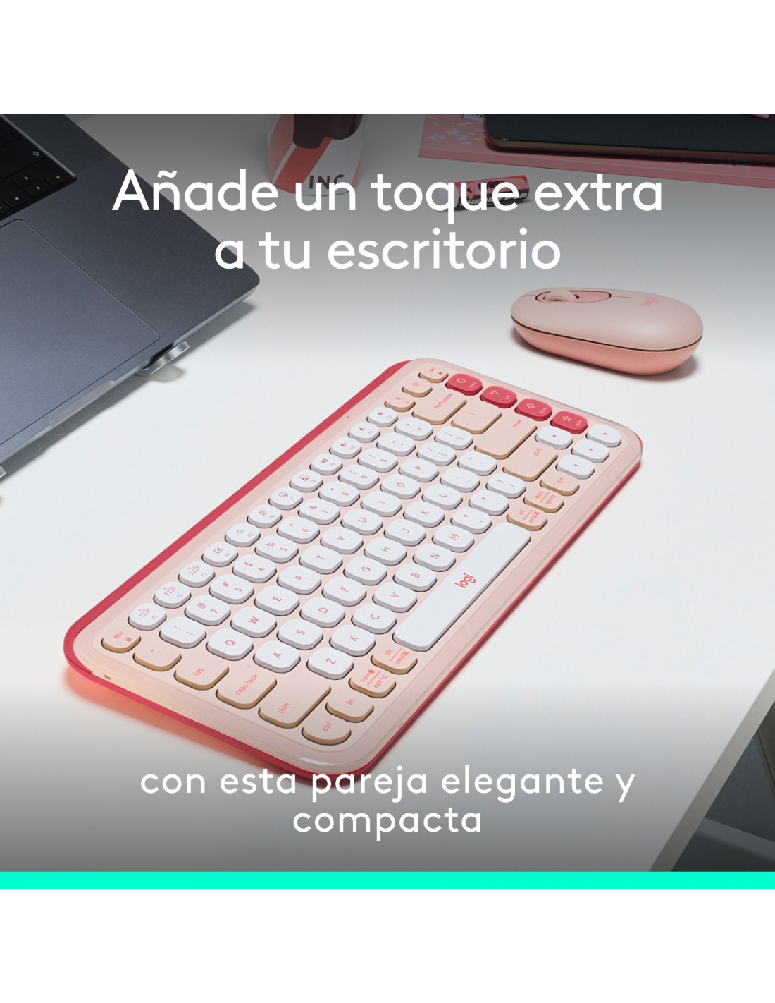 Logitech POP ICON COMBO, combinación de teclado y ratón Bluetooth, escritura cómoda, teclas y botones programables, clics discretos, Easy-Switch hasta 3 dispositivos: rosado, Mini, Inalámbrico, Bluetooth, QWERTY, Rosa, Ratón incluido