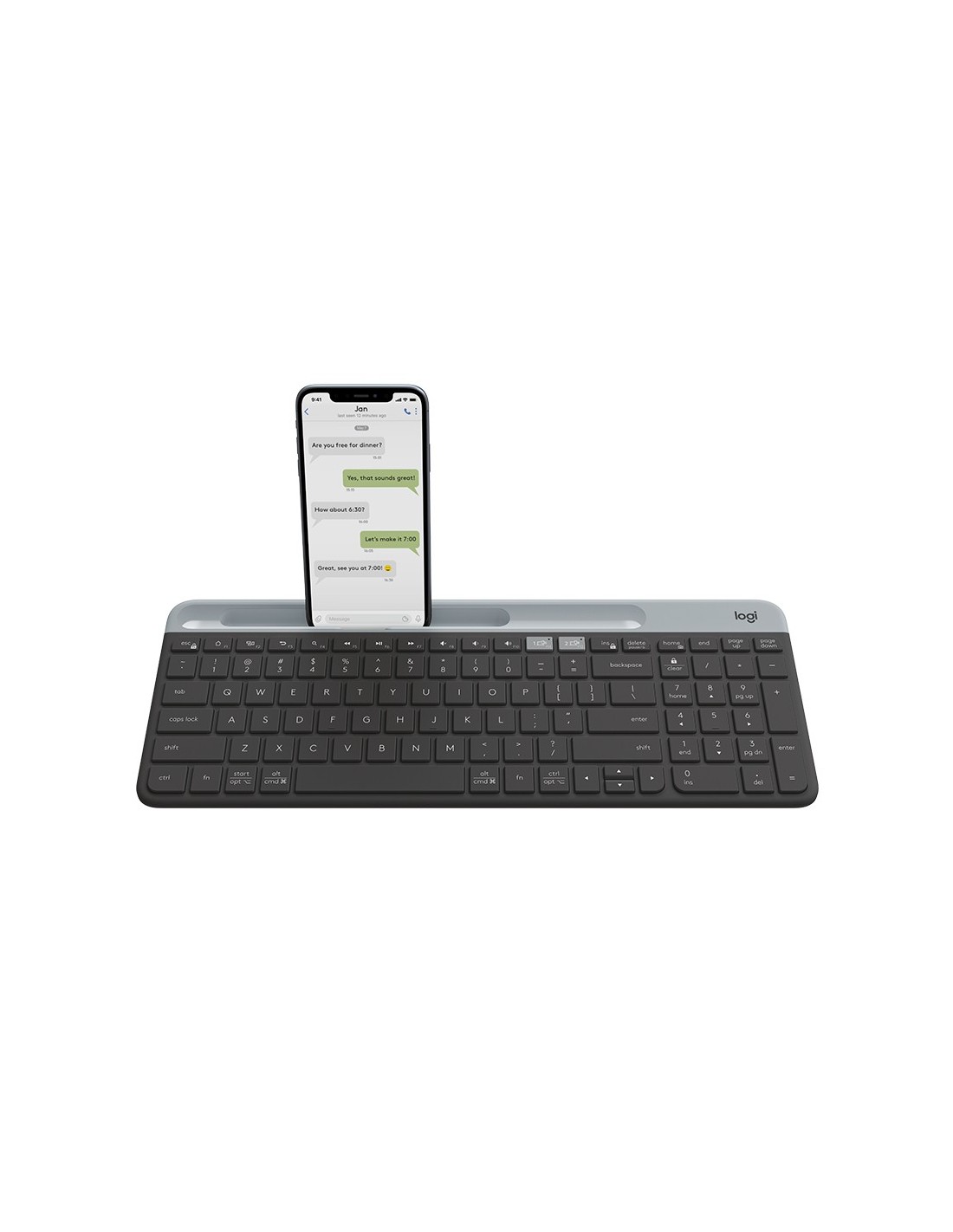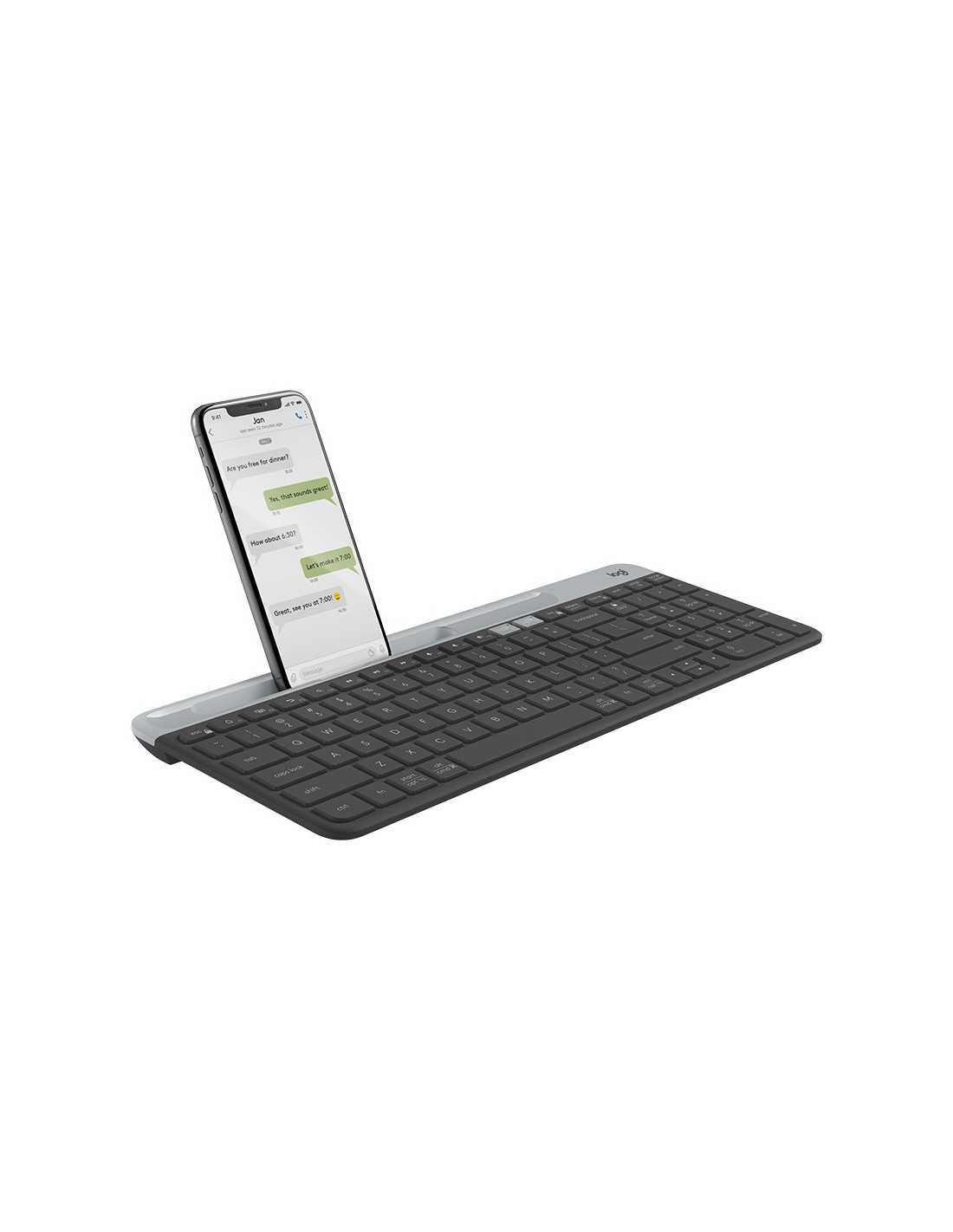 Logitech Slim Multi-Device Keyboard K580. Formato del teclado: Completo (100%). Estilo de teclado: Derecho. Tecnología de conectividad: Inalámbrico, Interfaz del dispositivo: RF Wireless + Bluetooth, Diseño de teclado: QWERTY, Uso recomendado: Universal. Color del producto: Grafito