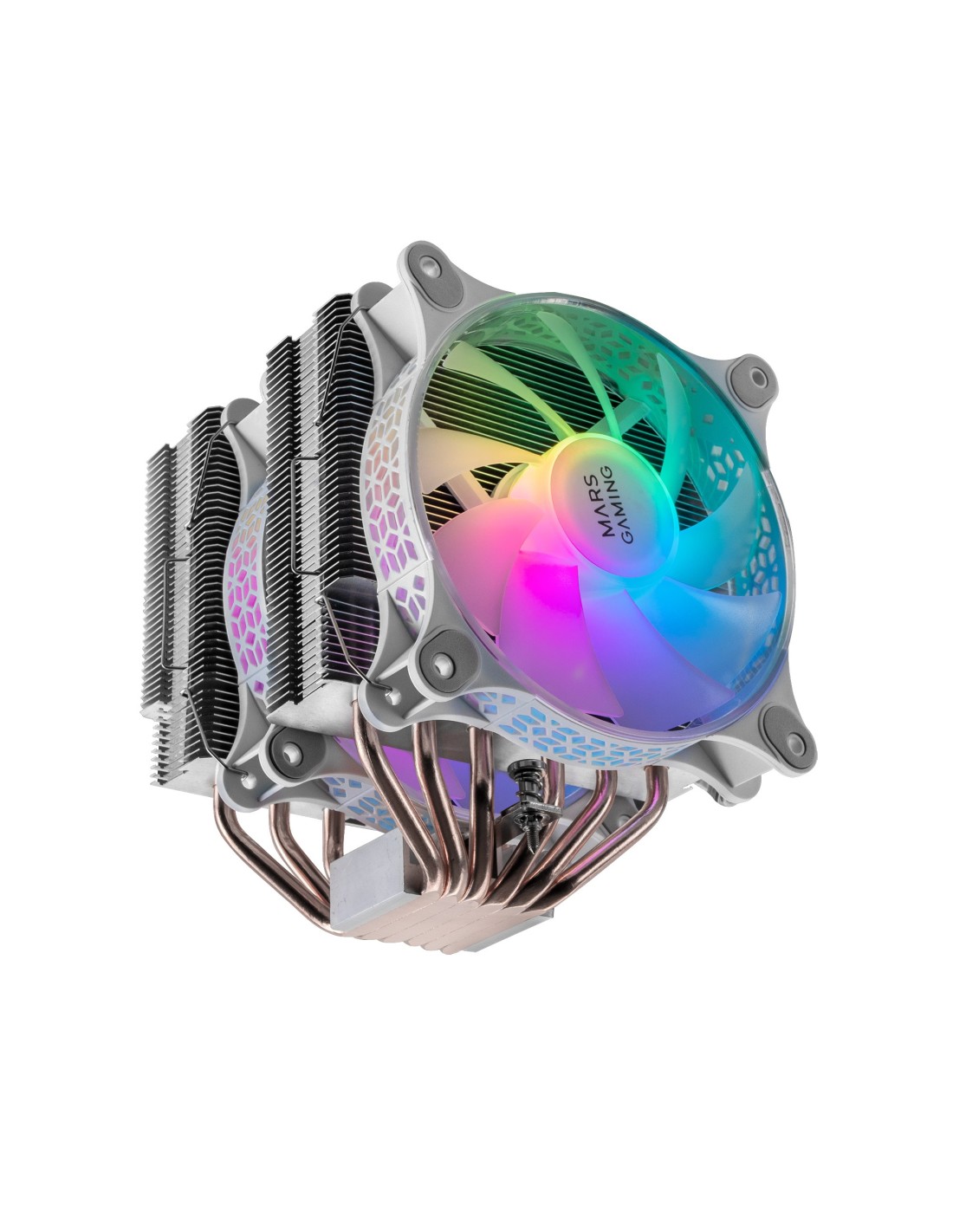 Mars Gaming Disipador CPU, Doble Torre Refrigeración, 6 Heatpipes HCT, TDP 300 W, 2 Ventiladores ARGB PWM 12 cm, MCPUXTW, Color Blanco, Sistema de refrigeración líquida todo en uno, 12 cm, 800 RPM, 1600 RPM, Blanco