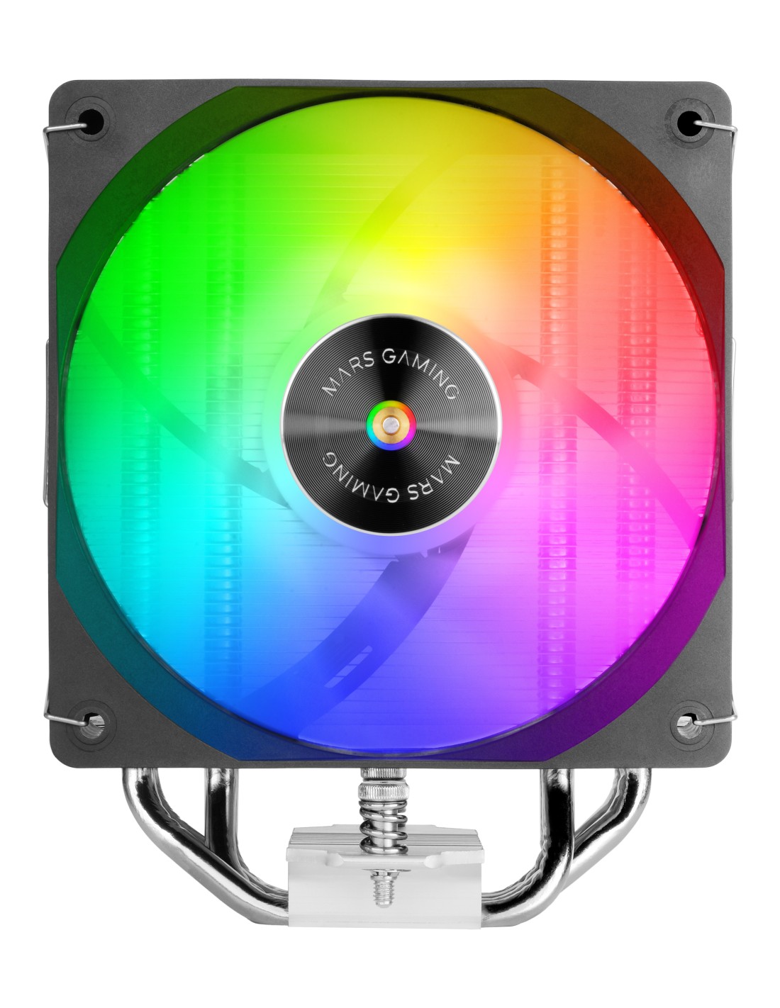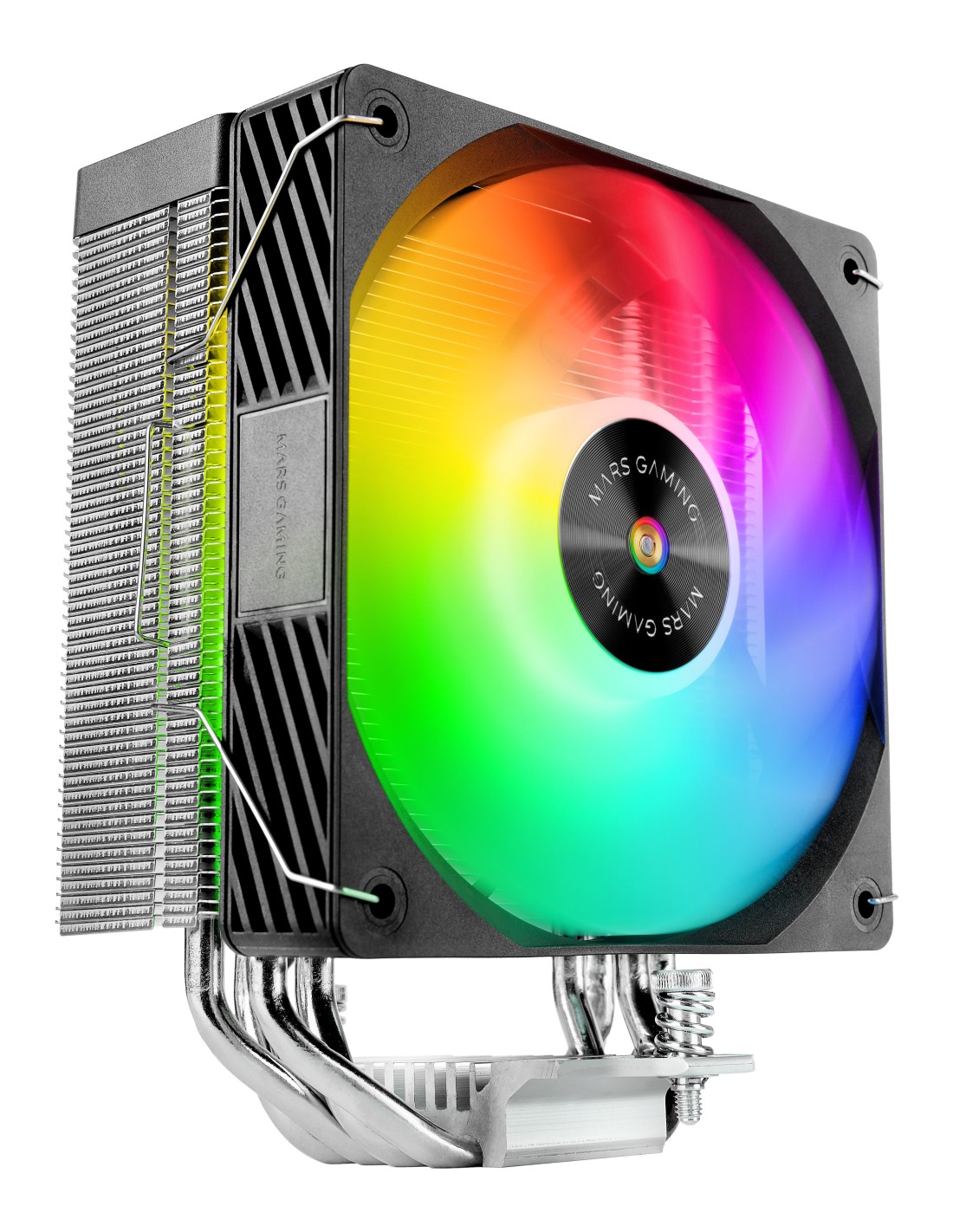 Mars Gaming Disipador CPU MCPU-X4ARGB. Tipo: Refrigerador de aire, Diámetro de ventilador: 12 cm, Presión de aire mínima: 0,79 mmH2O, Presión máxima de aire: 1,31 mmH2O, Tipo de soporte: Hidráulico. Ancho: 120 mm, Profundidad: 68 mm, Altura: 154 mm. Color del producto: Negro