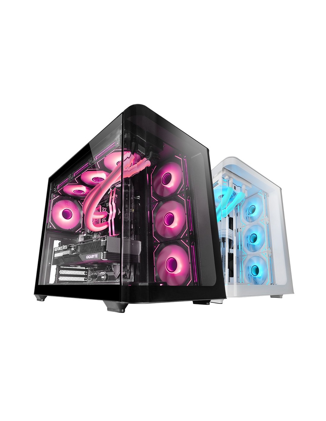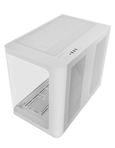 Mars Gaming MC-FUSION, Caja Gaming ATX, Ventana Lateral Completa y Frontal Curvo Cristal Templado Continuo, Semitorre PC Doble Cámara, Soporte Refrigeración Líquida, Espacio Interno Optimizado, Blanco, Midi Tower, PC, Blanco, ATX, micro ATX, Mini-ITX, 16 cm, 44,5 cm