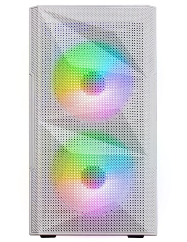 Mars Gaming MC-ME Blanco, Caja Gaming Compacta MicroATX, Ventana Lateral Completa Cristal Templado, Diseño Frontal Total-Mesh Geométrico, 2X Ventiladores FRGB 120mm, Mini Tower, PC, Blanco, micro ATX, Mini-ITX, Metal, Vidrio templado, Juego