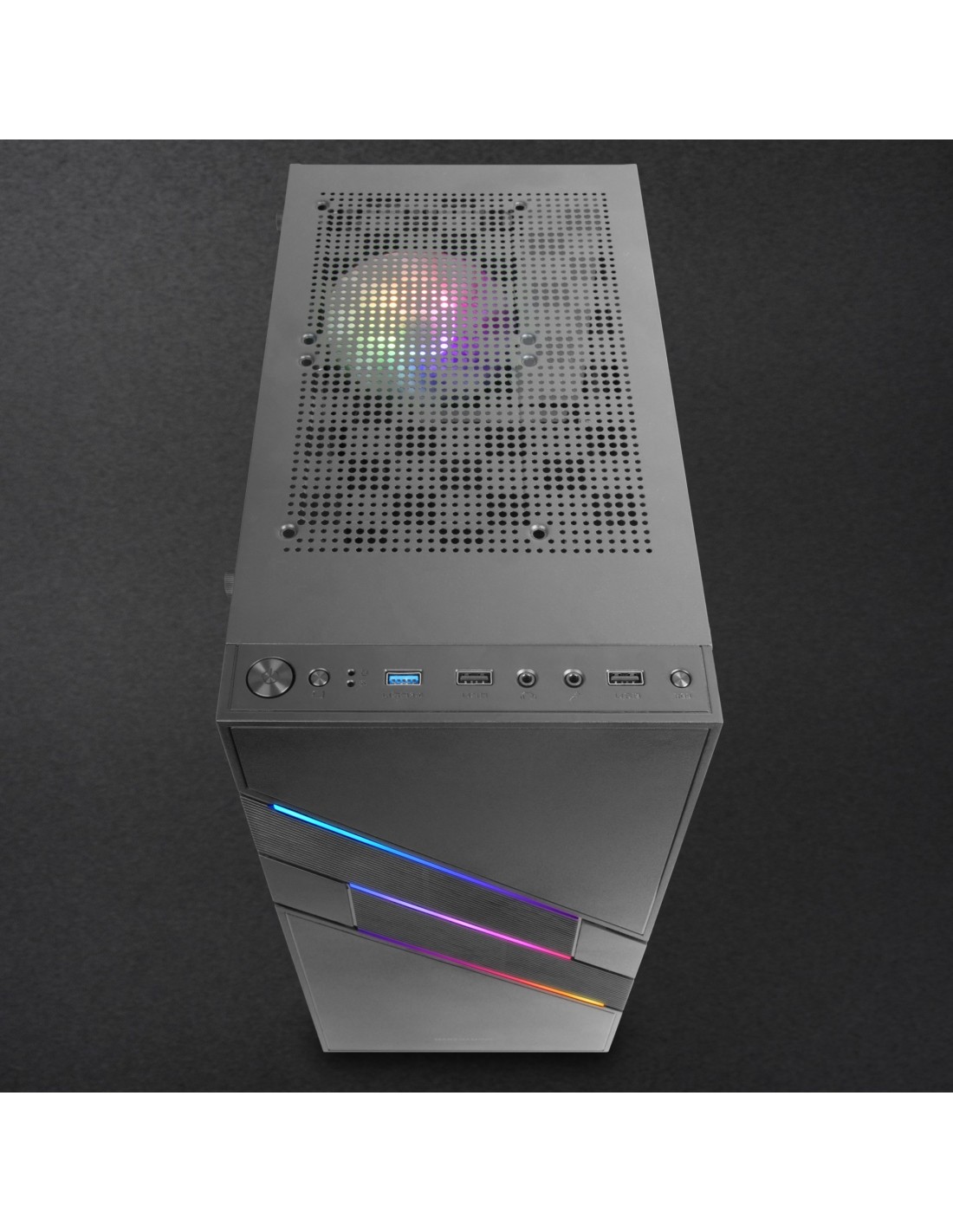 Mars Gaming MC-U3, Caja PC Gaming ATX XL, Frontal Triple ARGB, Ventilador 12cm ARGB, Ventana Cristal Templado, Negro, Torre, PC, Negro, ATX, micro ATX, Mini-ITX, Juego, 15,8 cm