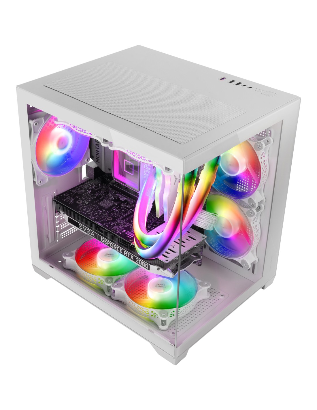 Equipada con un ventilador trasero FRGB de 120mm preinstalado y con capacidad para hasta 7 ventiladores de 120mm, la MC-VIEW2 garantiza un flujo de aire eficiente para mantener temperaturas óptimas en cualquier configuración. Su diseño permite la instalación de refrigeración líquida de hasta 240mm, mientras que su sistema de gestión de cableado interno mantiene el interior limpio y organizado, mejorando la estética y el flujo de aire.