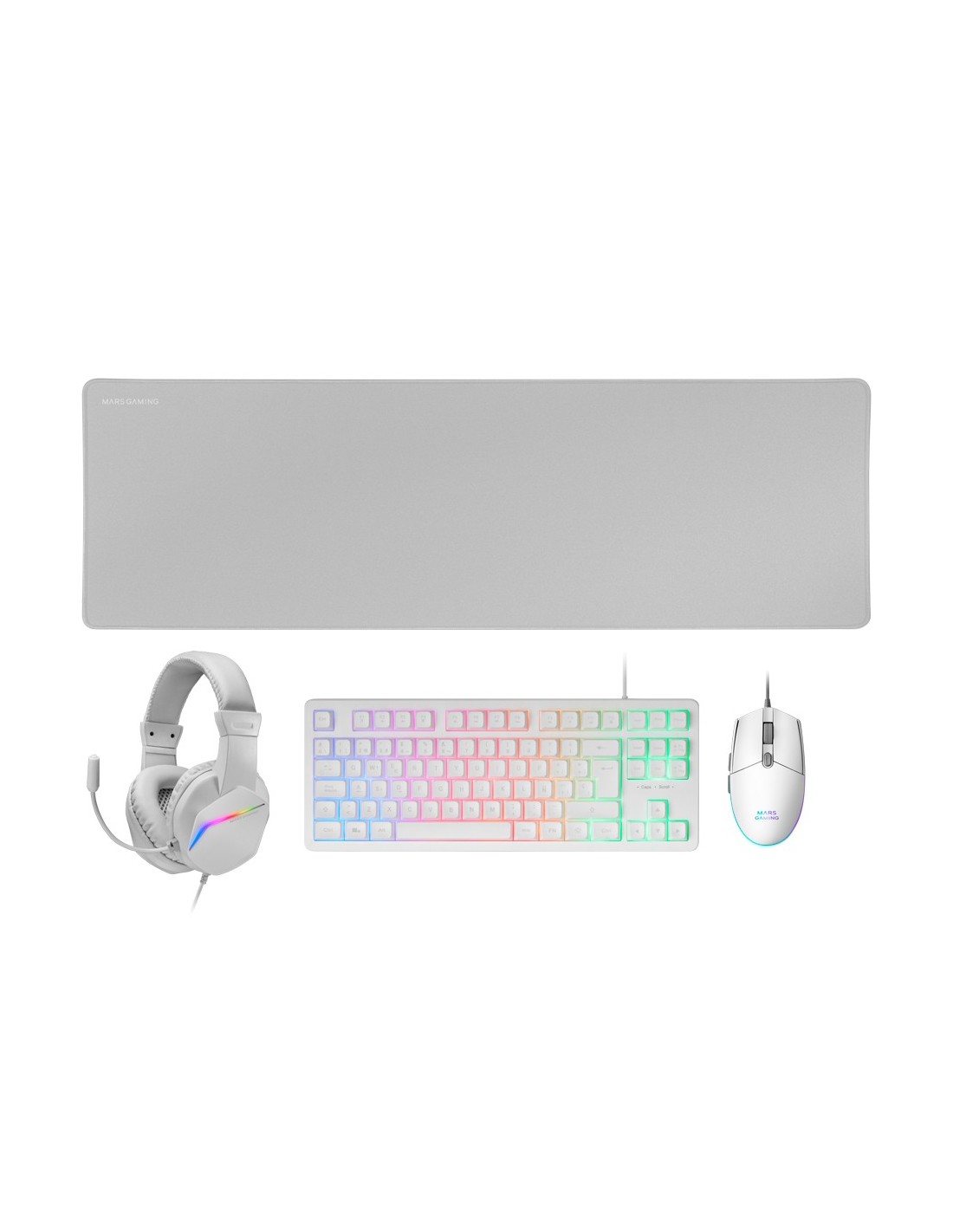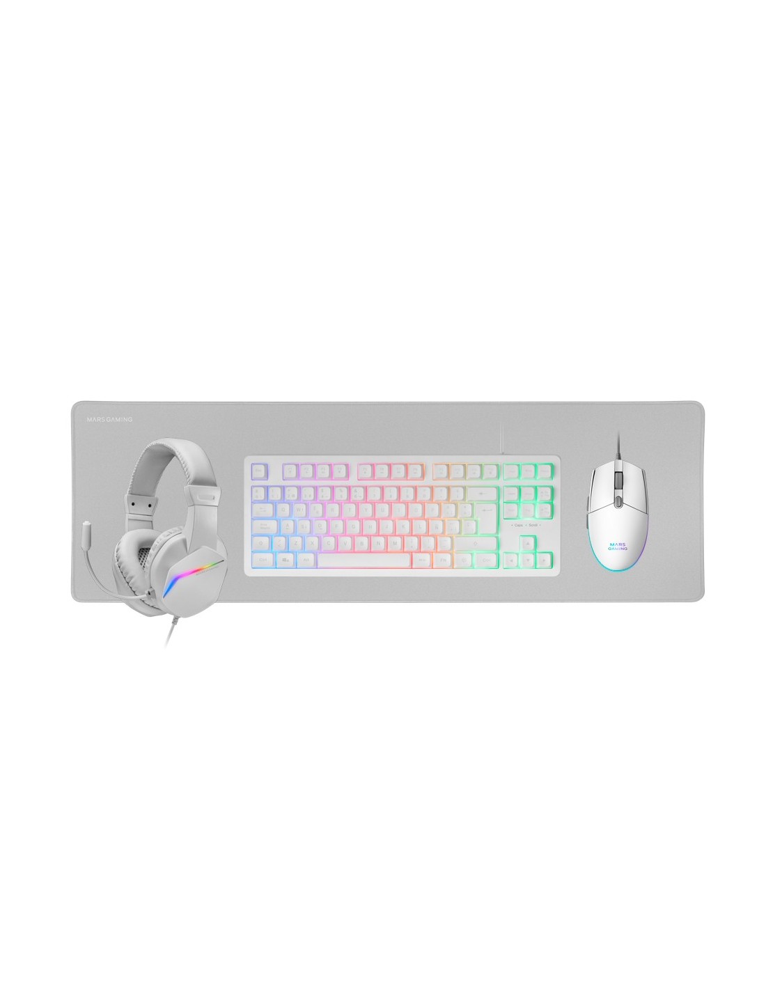 Mars Gaming MCP-RGB3, Pack Gaming Teclado Fixed RGB + Ratón Gaming RGB Flow 3200 DPI + Auriculares Over-Ear RGB + Alfombrilla XXL, Blanco, Idioma Español, Alámbrico, USB, Interruptor de membrana, QWERTY, LED RGB, Blanco