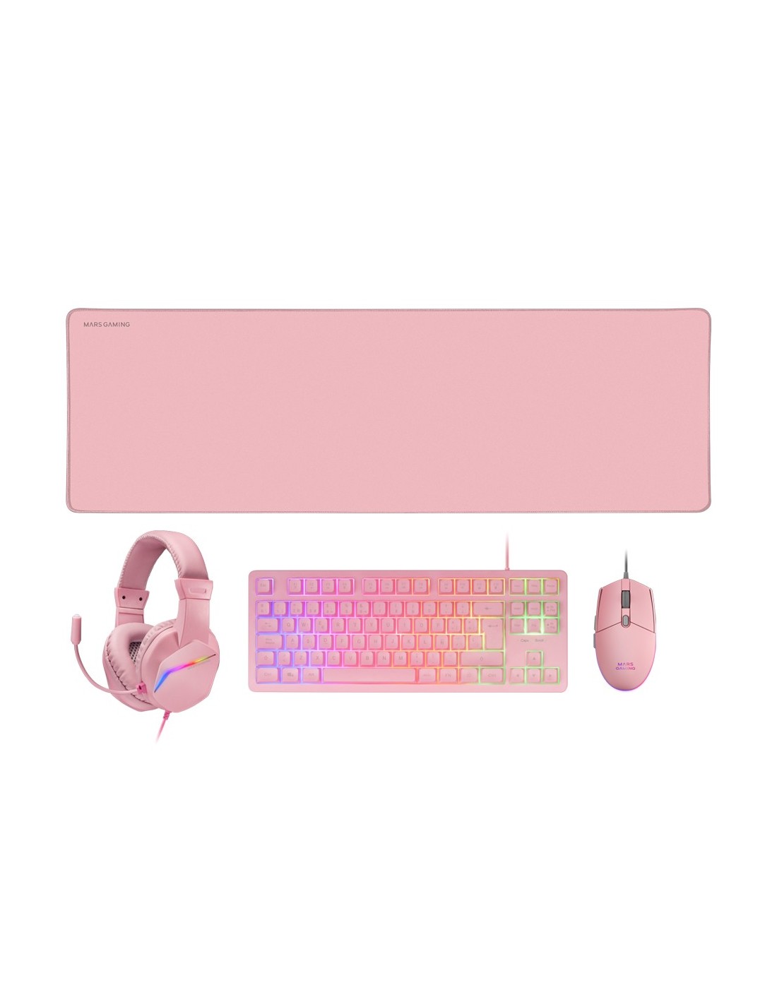 Mars Gaming MCP-RGB3, Pack Gaming Teclado Fixed RGB + Ratón Gaming RGB Flow 3200 DPI + Auriculares Over-Ear RGB + Alfombrilla XXL, Rosa, Idioma Español, Alámbrico, USB, Interruptor de membrana, QWERTY, LED RGB, Rosa