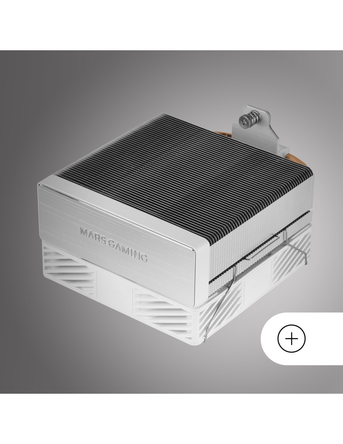 Mars Gaming MCPU-X4W. Tipo: Refrigerador de aire, Diámetro de ventilador: 12 cm, Presión de aire mínima: 0,79 mmH2O, Presión máxima de aire: 1,31 mmH2O, Tipo de soporte: Hidráulico. Ancho: 120 mm, Profundidad: 68 mm, Altura: 154 mm. Color del producto: Blanco