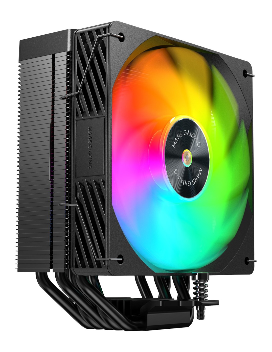 Mars Gaming MCPUX5ARGB. Tipo: Refrigerador de aire, Diámetro de ventilador: 12 cm, Presión de aire mínima: 0,79 mmH2O, Presión máxima de aire: 1,31 mmH2O, Tipo de soporte: Hidráulico. Ancho: 120 mm, Profundidad: 68 mm, Altura: 154 mm. Color del producto: Negro