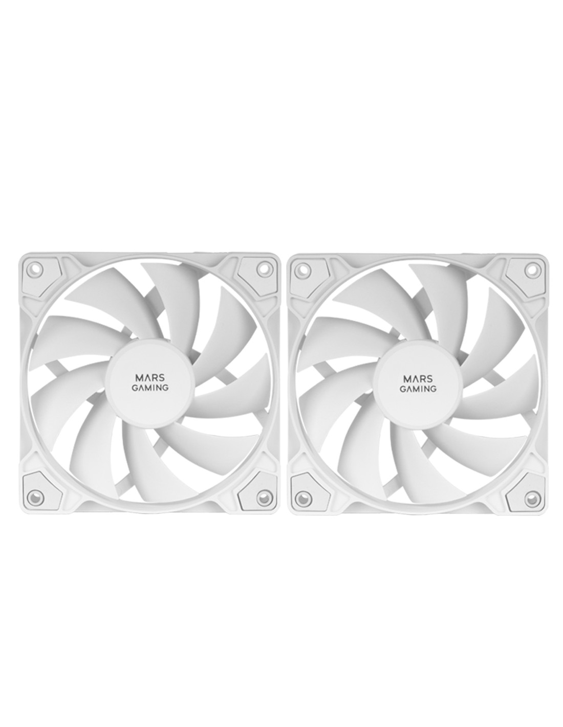 Mars Gaming MF-PROX2 Blanco, Kit 2 Ventiladores 120mm, Sistema Anti-vibraciones, Ultra-silenciosos, Doble Conexión 3PIN + 4PIN, Ventilador, 12 cm, 1200 RPM, Blanco