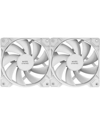 Mars Gaming MF-PWMX2 Blanco, Kit 2 Ventiladores 120mm, Ultra silenciosos FDB 12dB, Sistema Anti-vibraciones, Sistema PWM, Ventilador, 12 cm, Negro
