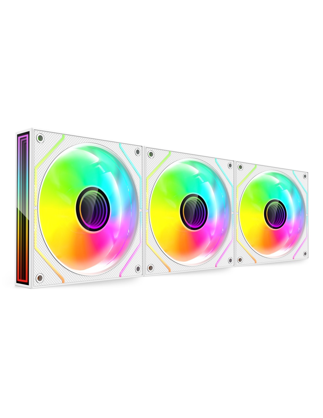 Iluminación Infinity Mirror 3D El MF-3DPROKIT eleva la estética y la refrigeración a un nuevo nivel con su espectacular diseño Infinity Mirror 3D. Este kit de tres ventiladores de 120mm con rodamientos FDB no solo garantiza un rendimiento silencioso y duradero, sino que también transforma tu setup con una iluminación ARGB envolvente. Su marco dinámico con dos tiras LED laterales y efectos Infinity Mirror en el núcleo y los bordes del ventilador crean un impacto visual impresionante, llevando la personalización de tu PC más allá de los límites.