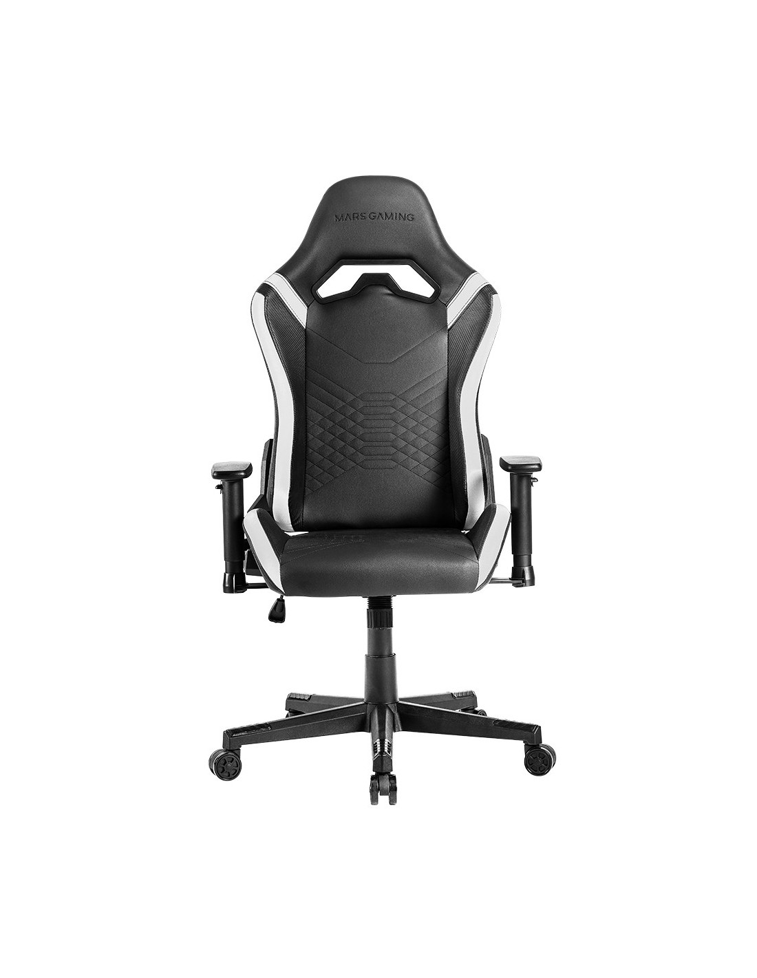 Mars Gaming MGC-PRO, Silla Gaming Profesional, Acabado Cuero PU, Reposabrazos 2D y Respaldo Reclinable 135°, Cojines Lumbar y Cervical Soft-Touch, Ruedas XL y Pistón Gas Clase 4, Blanco. Tipo de asiento: Asiento acolchado, Tipo de respaldo: Respaldo acolchado, Color del asiento: Negro, Blanco. Altura (min.): 122 cm, Altura (máx.): 132 cm, Ancho del respaldo: 55 cm. Ancho del paquete: 655 mm, Profundidad del paquete: 805 mm, Altura del paquete: 330 mm