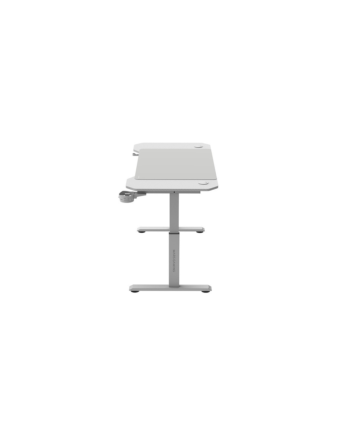 Mars Gaming MGD-ERGO120, Mesa Altura Ajustable 3 Posiciones, Superficie Ergonómica, Estructura Metálica, Alfombrilla XXL, Soporte Auriculares y Bebida, Gestión Cableado, Mesa Gaming 120x60cm, Blanco, Derecho, Forma rectangular, Tableros de partículas, Acero, Juego, Fibra de carbono