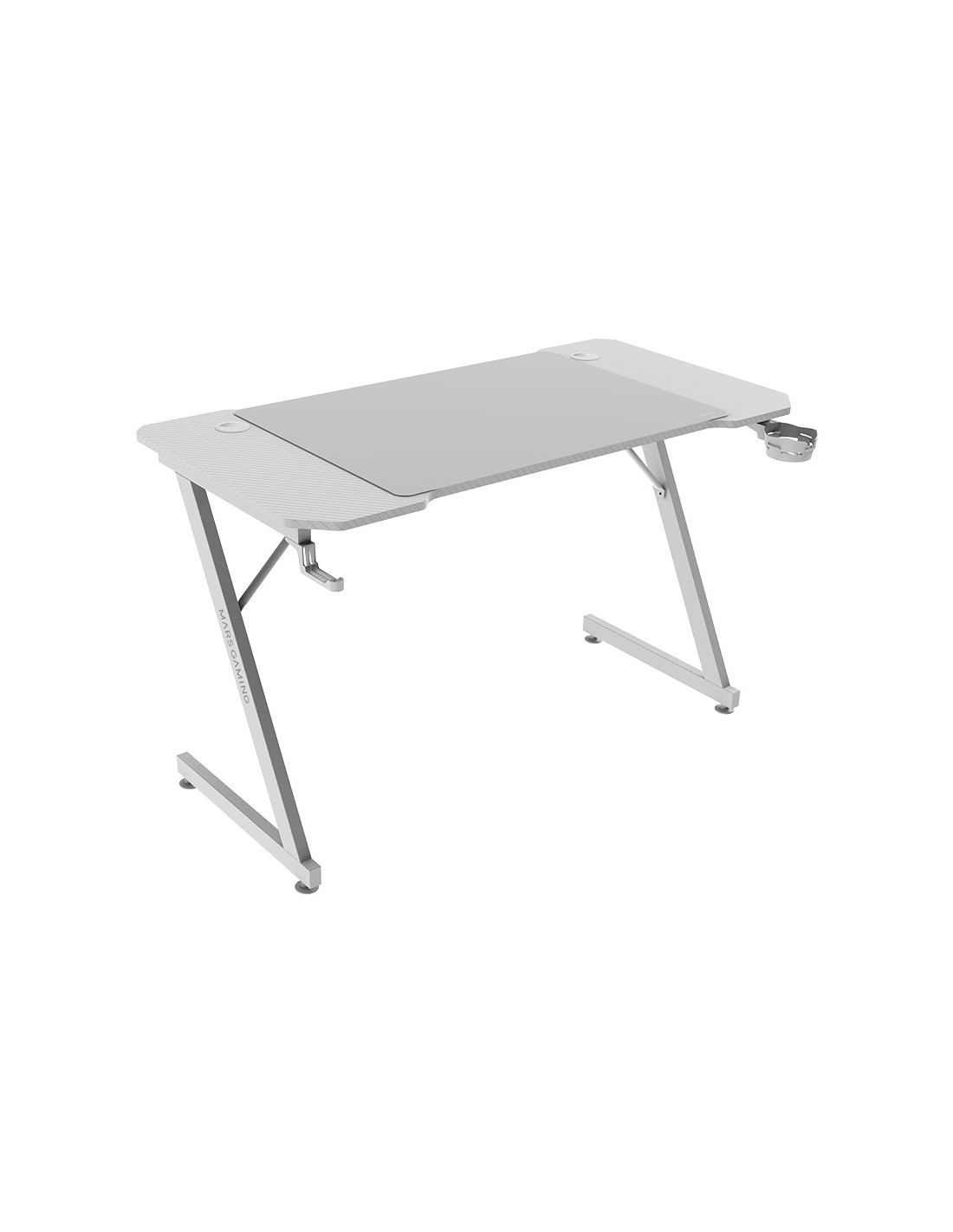 Mars Gaming MGD-X120, Mesa Gaming Ergonómica, Superficie en Fibra de Carbono, Estructura Metálica, Alfombrilla XXL, Soporte Auriculares y Bebida, Gestión Cableado, Escritorio PC 120x60cm, Blanco, Derecho, Forma rectangular, Tableros de partículas, Acero, Juego, Fibra de carbono