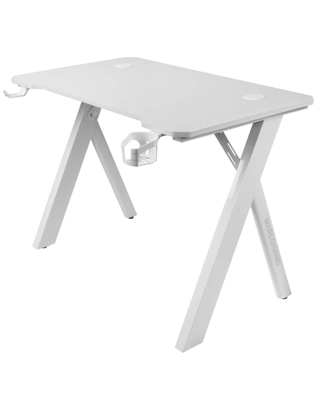 Mars Gaming MGD100RGB, Mesa Gaming Ergonómica RGB, Alfombrilla XXL, Soporte Auriculares y Bebida, Escritorio PC, 100x60cm, Blanco, Derecho, Forma rectangular, Acero, Juego, Fibra de carbono, Blanco