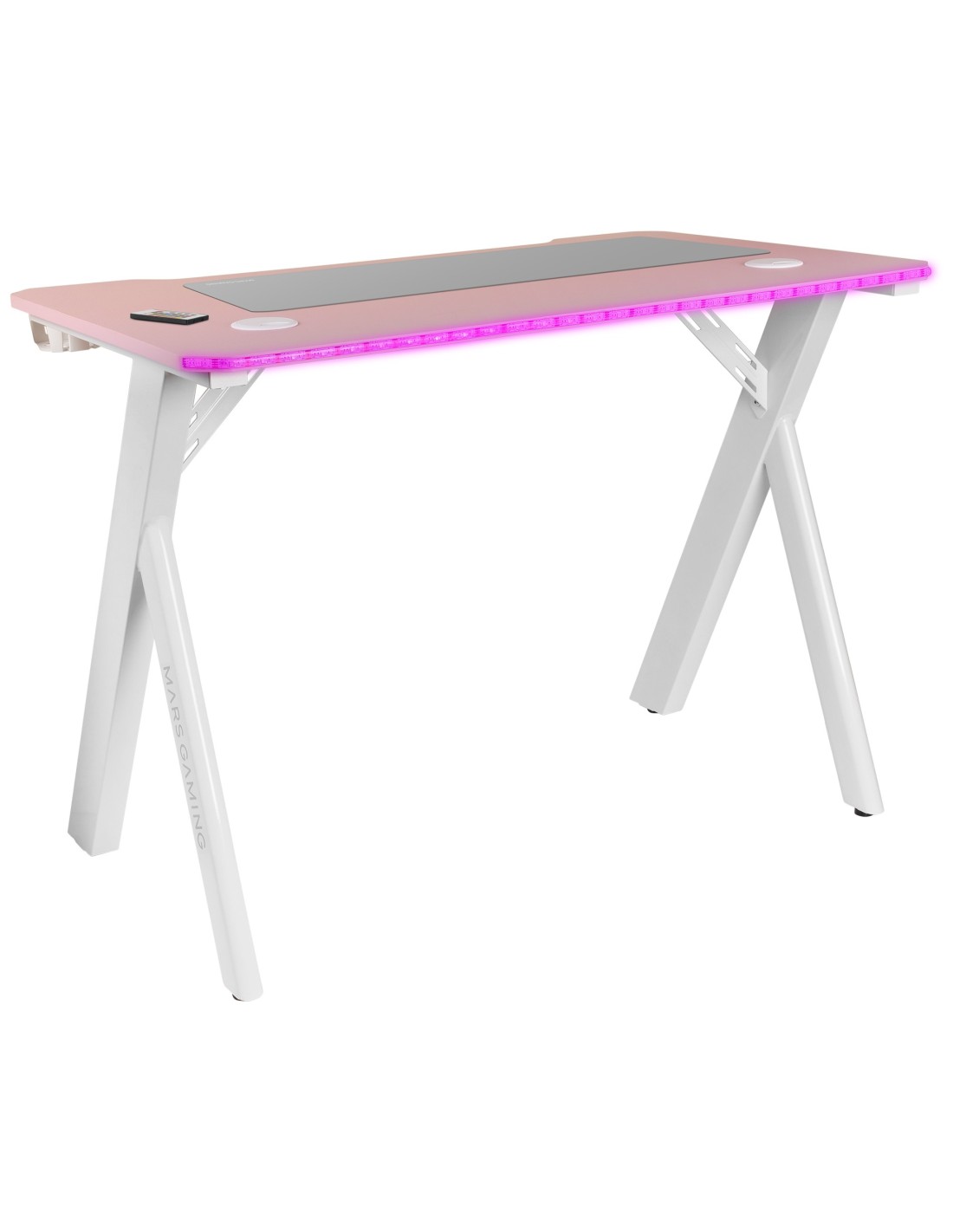 Mars Gaming MGD100RGB, Mesa Gaming Ergonómica RGB, Alfombrilla XXL, Soporte Auriculares y Bebida, Escritorio PC, 100x60cm, Rosa