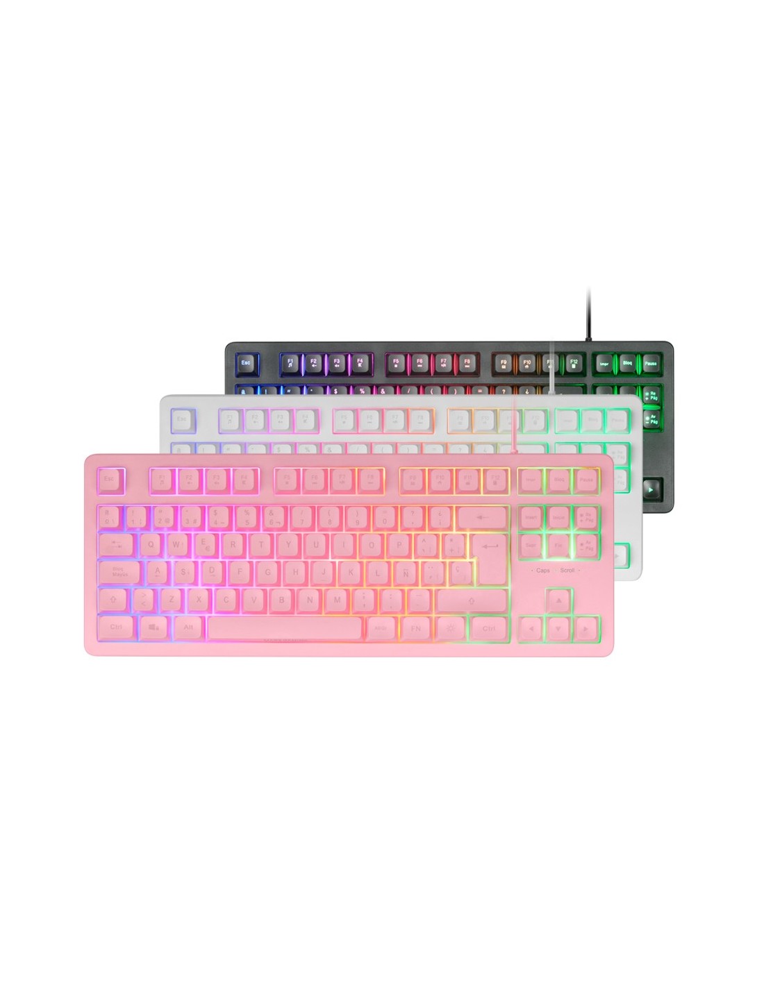 Mars Gaming MK023, Teclado Gaming TKL, Tecnología Híbrida H-Mech, Iluminación FRGB Rainbow, Anti-ghosting, Compatibilidad Universal, Rosa, Idioma Español, Alámbrico, USB, Interruptor de membrana, QWERTY, LED RGB, Rosa
