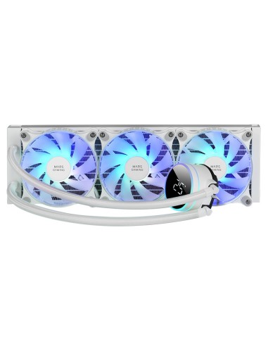 Mars Gaming ML-LCD360, Refrigeración Líquida AIO, TDP 600W, 3x Ventiladores FDB ARGB 120mm, Pantalla LCD con Monitoreo de Temperatura, Bomba Opti-Chamber 3rd Gen, Multisocket Universal, Blanco, Kit de refrigeración líquida, 12 cm, Blanco