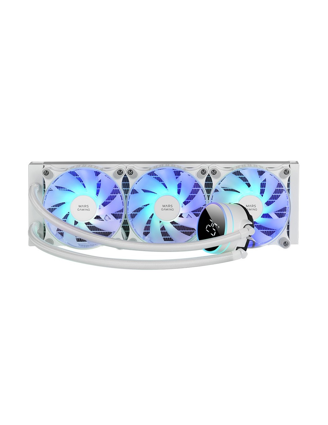 Mars Gaming ML-LCD360, Refrigeración Líquida AIO, TDP 600W, 3x Ventiladores FDB ARGB 120mm, Pantalla LCD con Monitoreo de Temperatura, Bomba Opti-Chamber 3rd Gen, Multisocket Universal, Blanco. Tipo: Kit de refrigeración líquida, Diámetro de ventilador: 12 cm, Tipo de soporte: Hidráulico. Color del producto: Blanco
