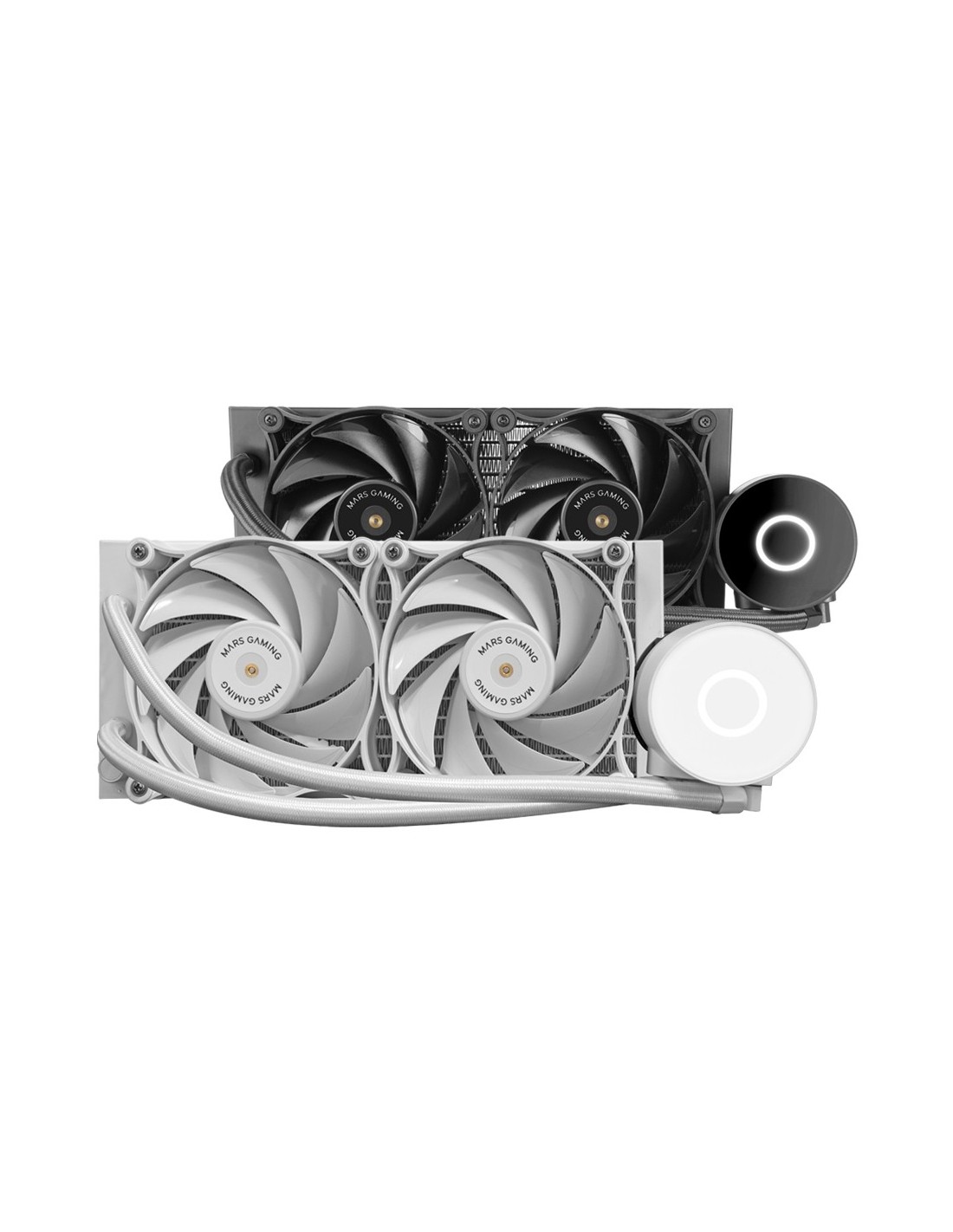 Mars Gaming ML-PRO240, Refrigeración Líquida CPU Profesional, TDP 450W, 2 Ventiladores FDB Ultra-silenciosos, Bomba Opti-Chamber con Anillo de Iluminación Blanco, Multisocket Universal, Blanco, Sistema de refrigeración líquida todo en uno, 12 cm, Negro