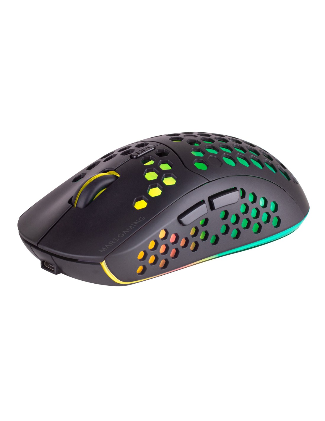 Mars Gaming MMW3, Ratón Gaming Inalámbrico, RGB Flow, Ultraligero 79g, 3200DPI, Negro, mano derecha, Óptico, RF inalámbrico, 3200 DPI, Negro