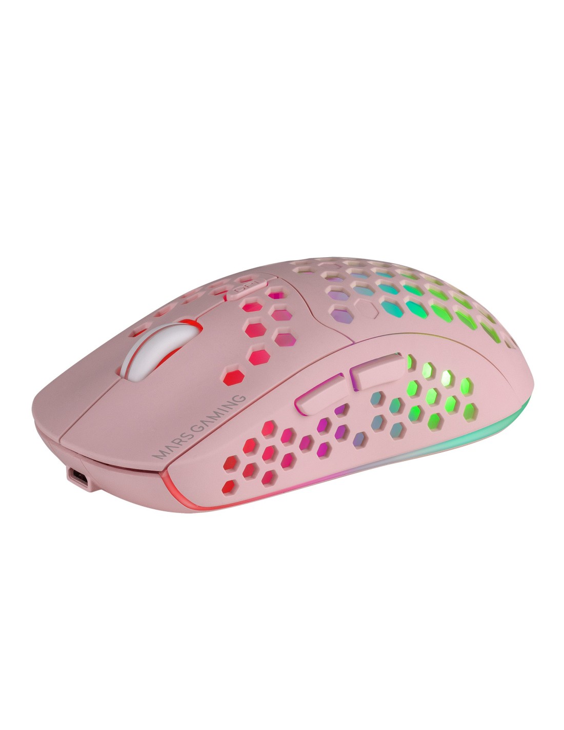 Mars Gaming MMW3P, Ratón Gaming Inalámbrico, RGB Flow, Ultraligero 79g, 3200DPI, Rosa, mano derecha, Óptico, RF inalámbrico, 3200 DPI, Rosa