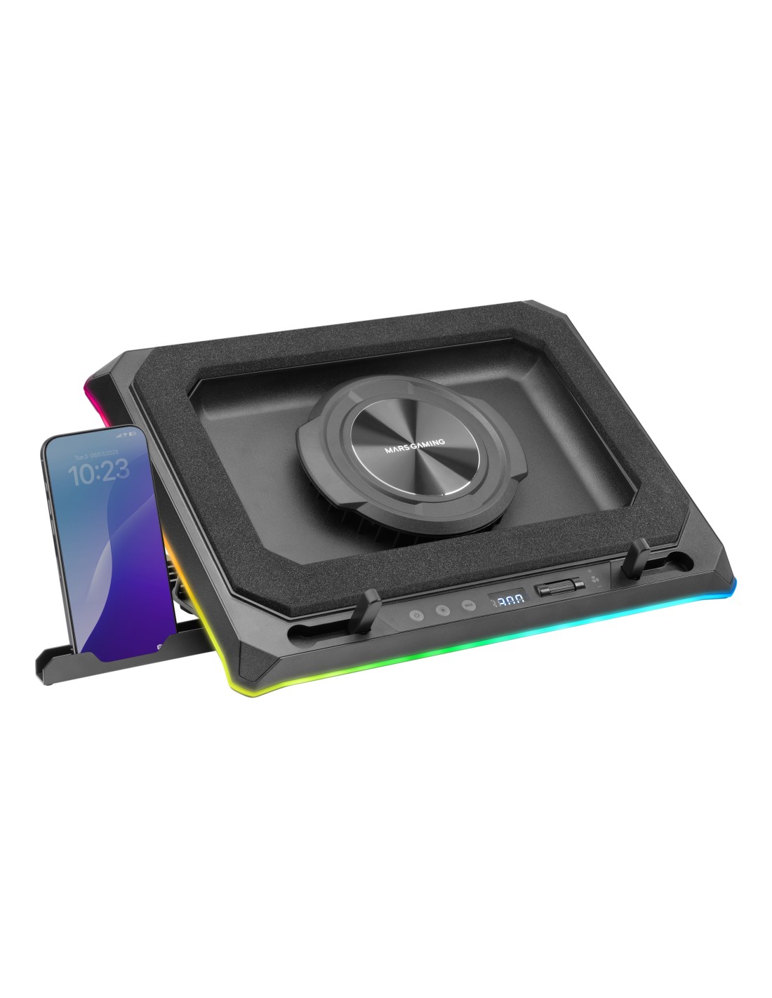 Mars Gaming MNBC-ULTRA. Tamaño máximo de pantalla: 45,7 cm (18"), Número de ventiladores incluidos: 1 pieza(s), Diámetro de ventilador: 14 cm. Color del producto: Negro, Material: ABS, Acero, Iluminación de color: Azul, Verde, Rojo. Interfaz de host: USB. Alimentación: USB, Voltaje de entrada: 100 - 240 V. Ancho: 420 mm, Profundidad: 340 mm, Altura: 55 mm