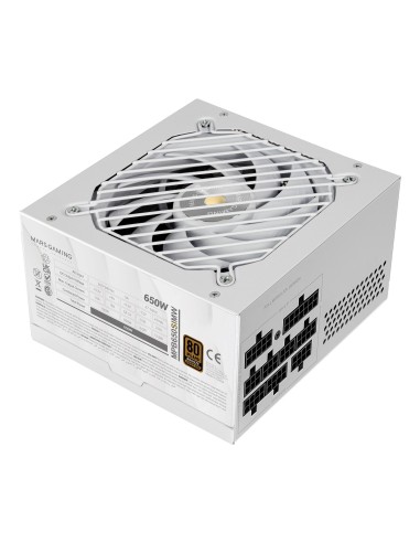 Mars Gaming MPB650SIMW. Potencia total: 650 W, Voltaje de entrada AC: 200 - 240 V, Frecuencia de entrada AC: 47 - 63 Hz. Alimentador de energía para tarjeta madre: 24-pin ATX, Longitud del cable de alimentación de la placa base: 50 cm, Tipo de cableado: Totalmente modular. Utilizar con: PC, Factor de forma de fuente de alimentación (PSU): ATX, Certificación 80 PLUS: 80 PLUS Bronze. Color del producto: Blanco, Tipo de enfriamiento: Activo, Diámetro de ventilador: 12 cm. Certificados de conformidad: CE, RoHS