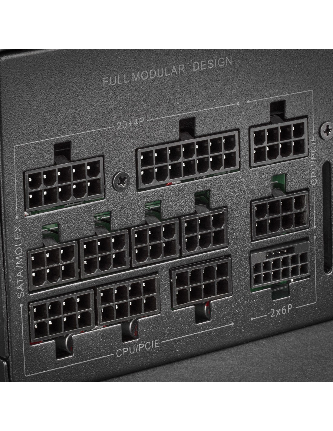 La certificación 80PLUS Gold garantiza una eficiencia energética superior al 90%, reduciendo el consumo y la generación de calor. Sus condensadores japoneses Toshin Kyogo de 105ºC ofrecen un rendimiento excepcional y una vida útil prolongada, incluso en entornos exigentes y de alta temperatura.