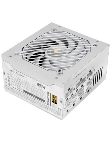 Mars Gaming MPB850PSIW. Potencia total: 850 W, Voltaje de entrada AC: 200 - 240 V, Frecuencia de entrada AC: 47 - 63 Hz. Alimentador de energía para tarjeta madre: 24-pin ATX, Tipo de cableado: Totalmente modular. Utilizar con: PC, Factor de forma de fuente de alimentación (PSU): ATX, Certificación 80 PLUS: 80 PLUS Gold. Color del producto: Blanco, Tipo de enfriamiento: Activo, Diámetro de ventilador: 14 cm. Certificados de conformidad: CE, RoHS