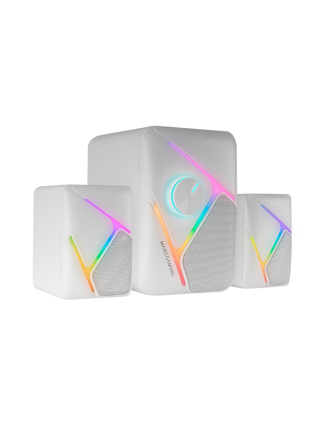 Mars Gaming MS-H21, Altavoces Gaming RGB 2.1 y Subwoofer 35W, Sistema Drivers Invertidos 3D Surround, Altavoces Compactos con Iluminación Dinámica RGB, Alimentación USB y Conector Jack 3.5mm, Blanco, 2.1 canales, Alámbrico, 35 W, 20 - 20000 Hz, 4 Ω, Blanco