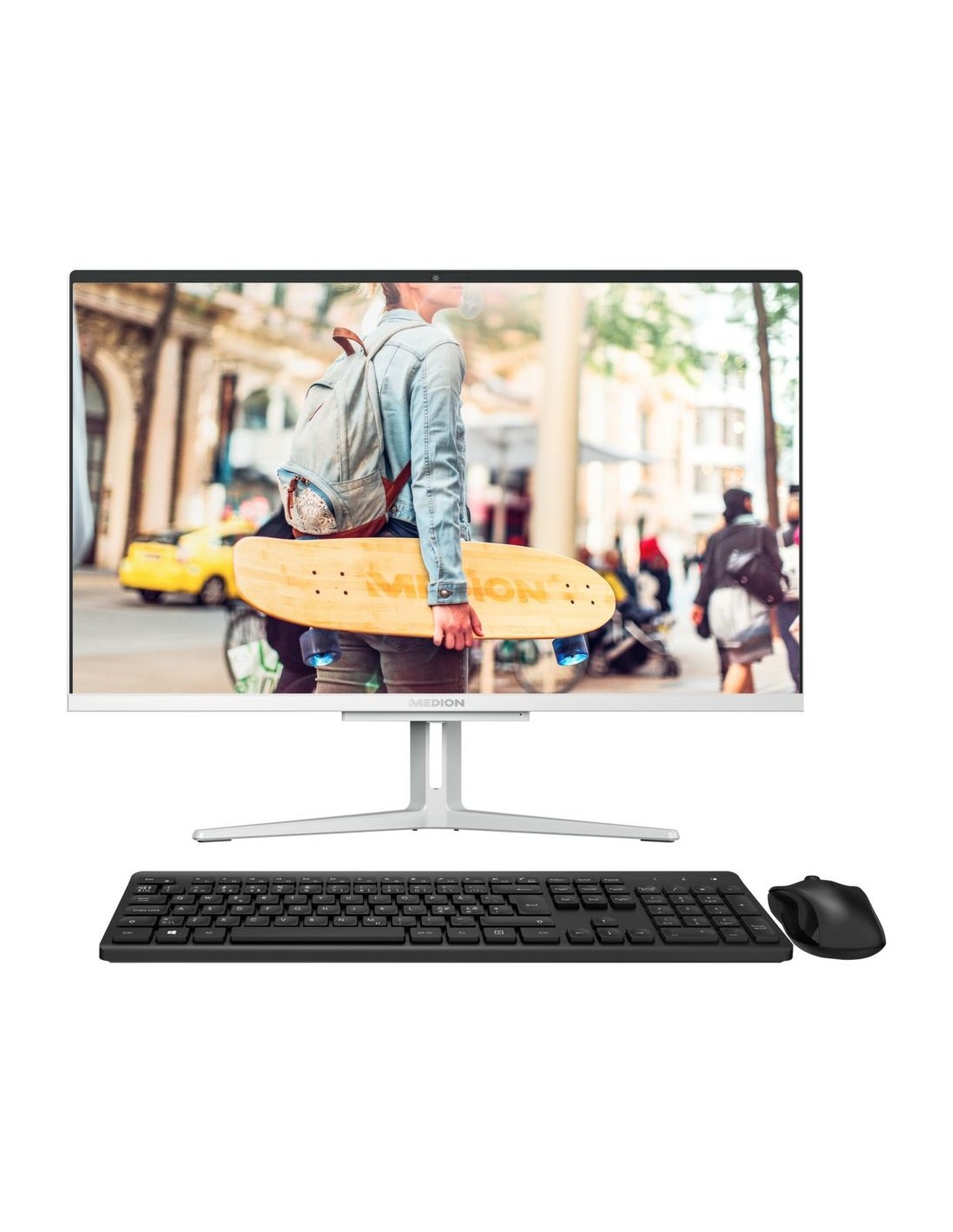 MEDION AKOYA E23405 MD62581. Tipo de producto: PC todo en uno. Diagonal de la pantalla: 60,5 cm (23.8"), Tipo HD: Full HD, Resolución de la pantalla: 1920 x 1080 Pixeles, Tipo de pantalla: IPS. Familia de procesador: Intel® Celeron®. Memoria interna: 4 GB, Tipo de memoria interna: DDR4-SDRAM. Capacidad total de almacenaje: 128 GB, Unidad de almacenamiento: SSD. Modelo de adaptador gráfico incorporado: Intel® UHD Graphics. Cámara incorporada. Sistema operativo instalado: Windows 11 Home. Color del producto: Plata