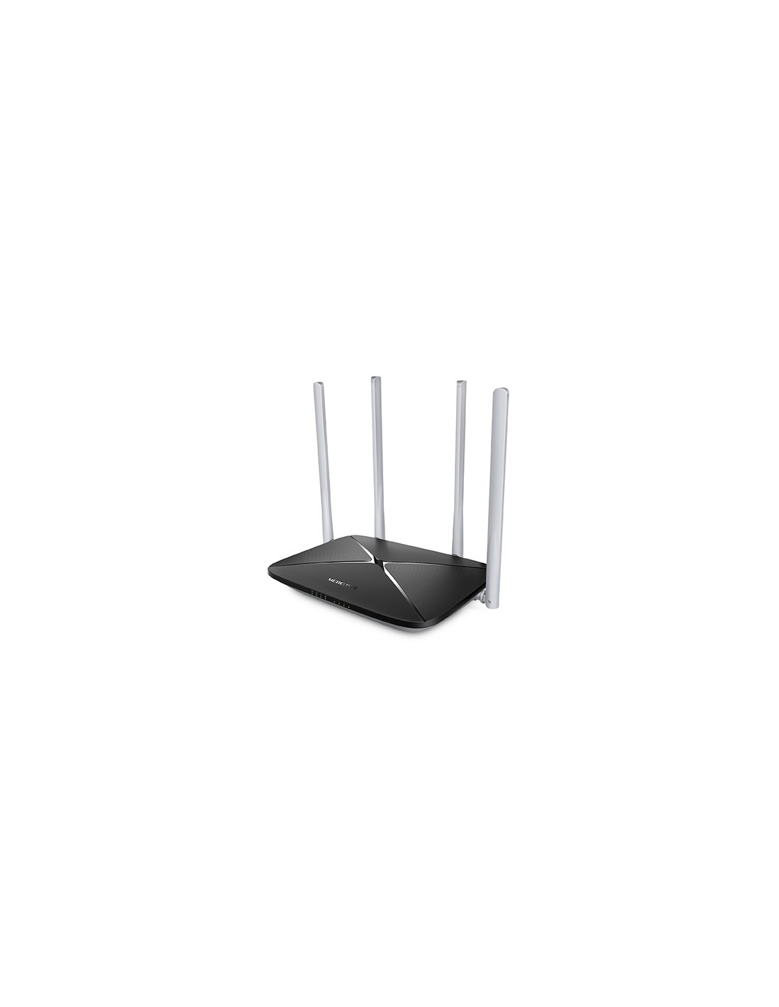 Mercusys AC12. Banda Wi-Fi: Doble banda (2,4 GHz / 5 GHz), Estándar Wi-Fi: Wi-Fi 5 (802.11ac), Tasa de transferencia de datos WLAN (máx.): 867 Mbit/s. Tipo de interfaz Ethernet LAN: Ethernet rápido, Ethernet LAN, velocidad de transferencia de datos: 10,100 Mbit/s, Tecnología de cableado: 10/100Base-T(X). Algoritmos de seguridad soportados: WPA-PSK, WPA2-PSK. Tipo de producto: Router de sobremesa, Color del producto: Negro. Certificación: CE, ROHS