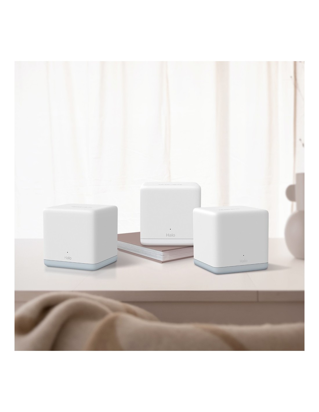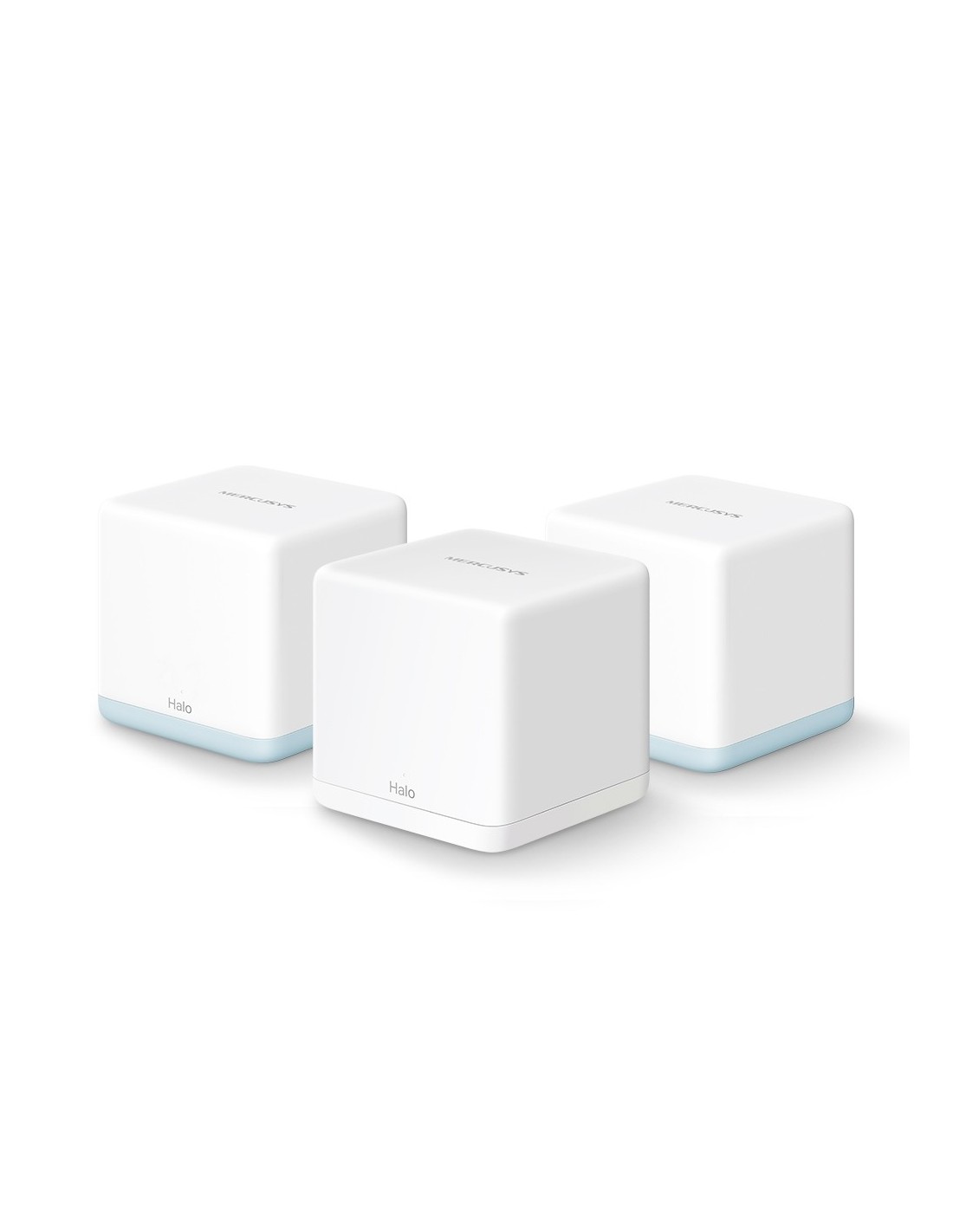 Mercusys HALO H32G (3-pack). Color del producto: Blanco, Tipo de antena: Interno, Tipo de producto: Sistema de malla. Banda Wi-Fi: Doble banda (2,4 GHz / 5 GHz), Estándar Wi-Fi: Wi-Fi 5 (802.11ac), Tasa de transferencia de datos WLAN (máx.): 1200 Mbit/s. Seguridad con cortafuegos: SPI Firewall, Modos de funcionamiento: Router, Access Point. Ancho: 88 mm, Profundidad: 88 mm, Altura: 88 mm. Número de unidades incluidas: 3 pieza(s)