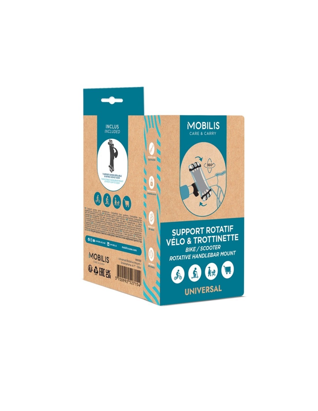 Mobilis 001353. Tipo de dispositivo móvil: Ordenador portátil, Teléfono móvil/smartphone, Tipo: Soporte pasivo, Uso adecuado: Bicicleta, Bicicleta/Coche, Scooter, Color del producto: Negro